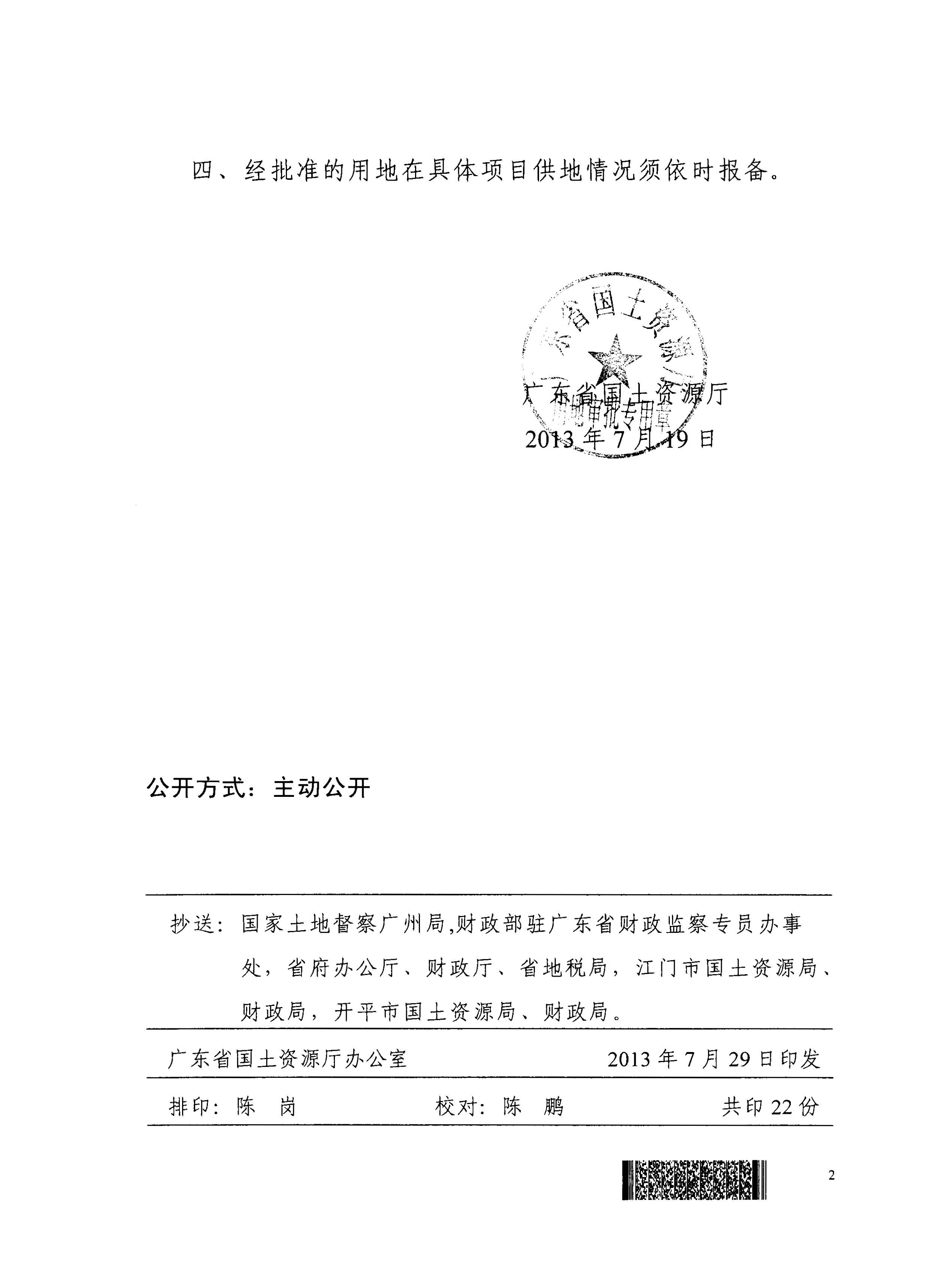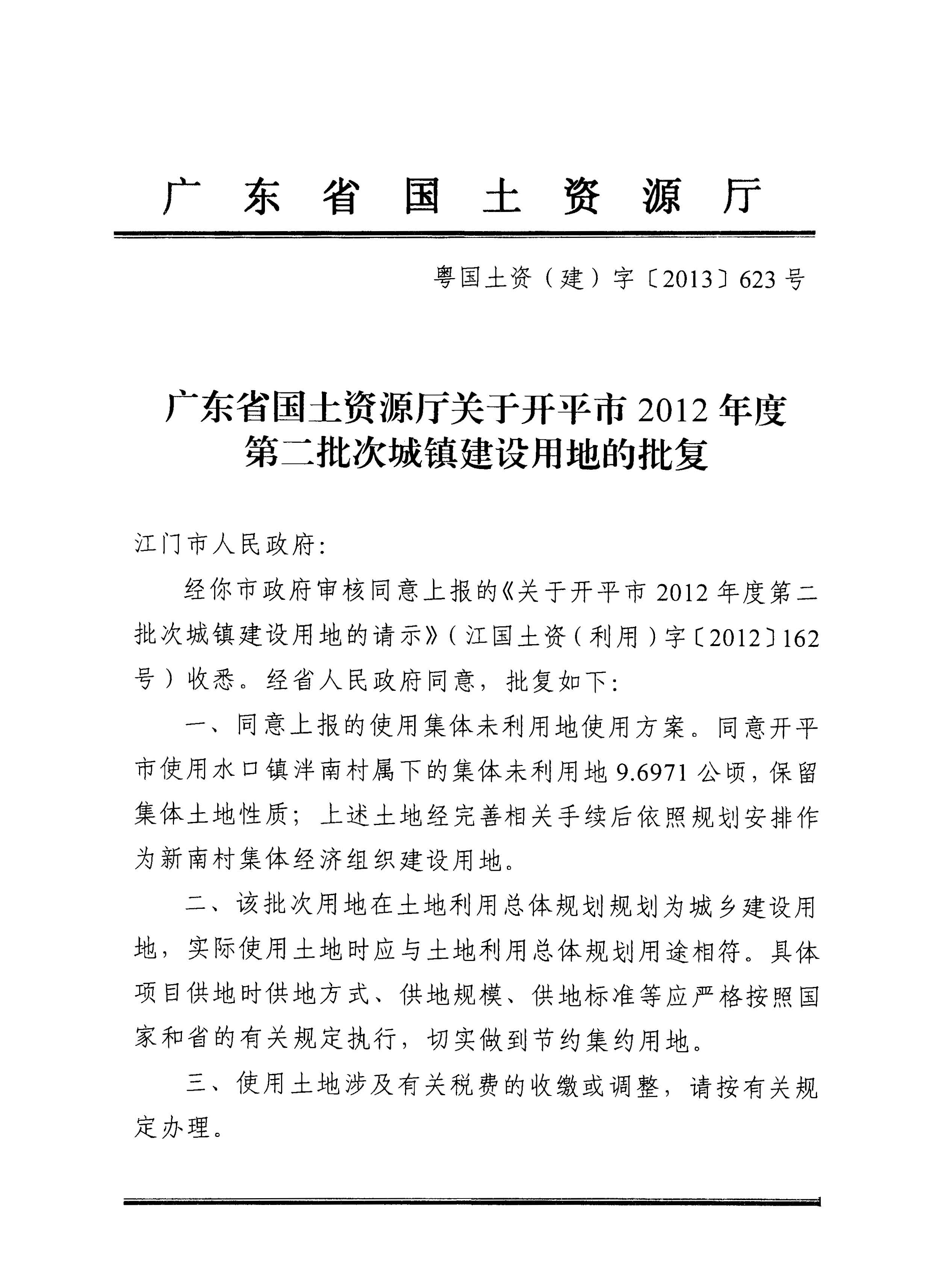 開平市2012年度第二批次城鎮建設用地的批復