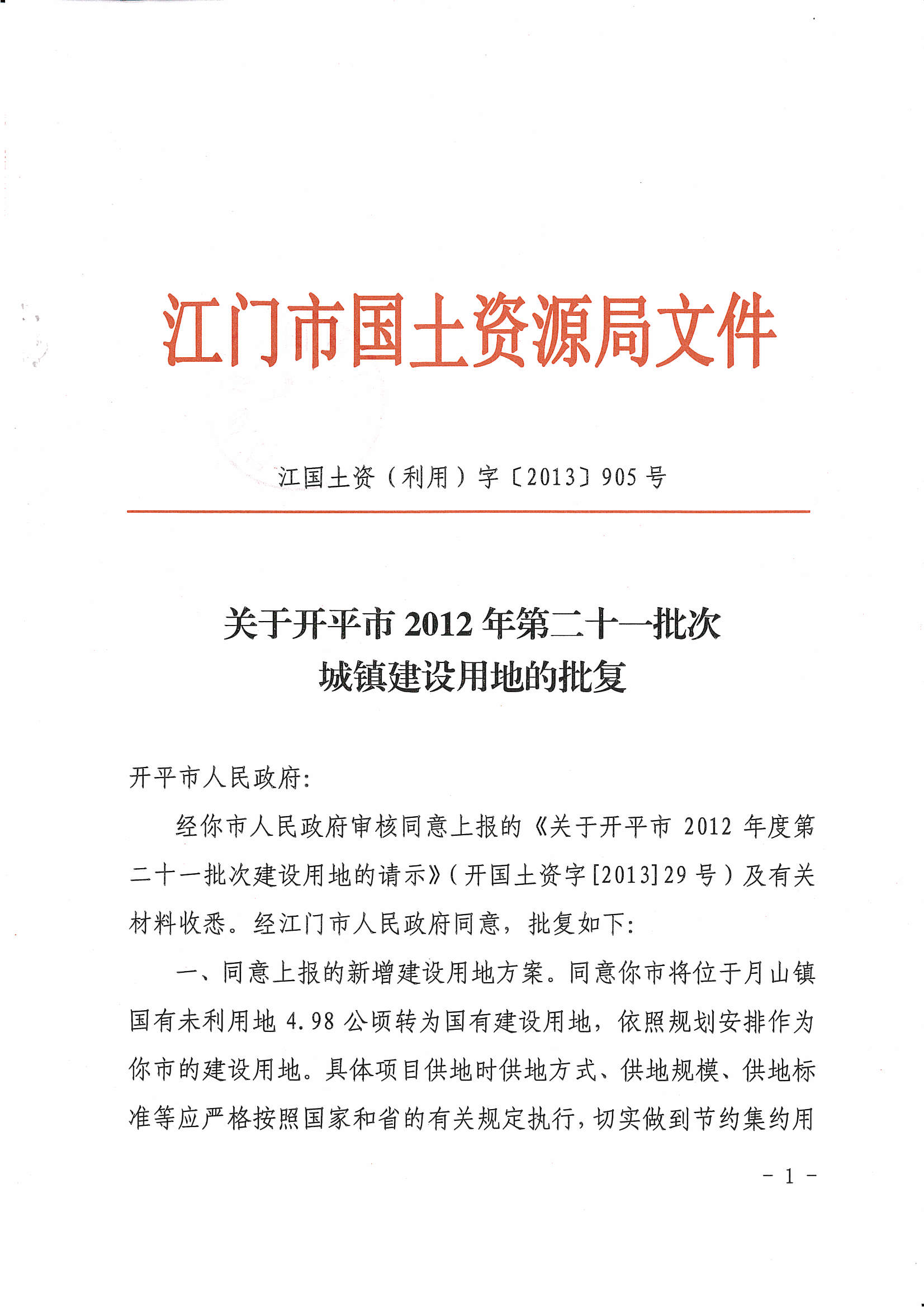 開平市2012年度第二十一批次城鎮建設用地的批復