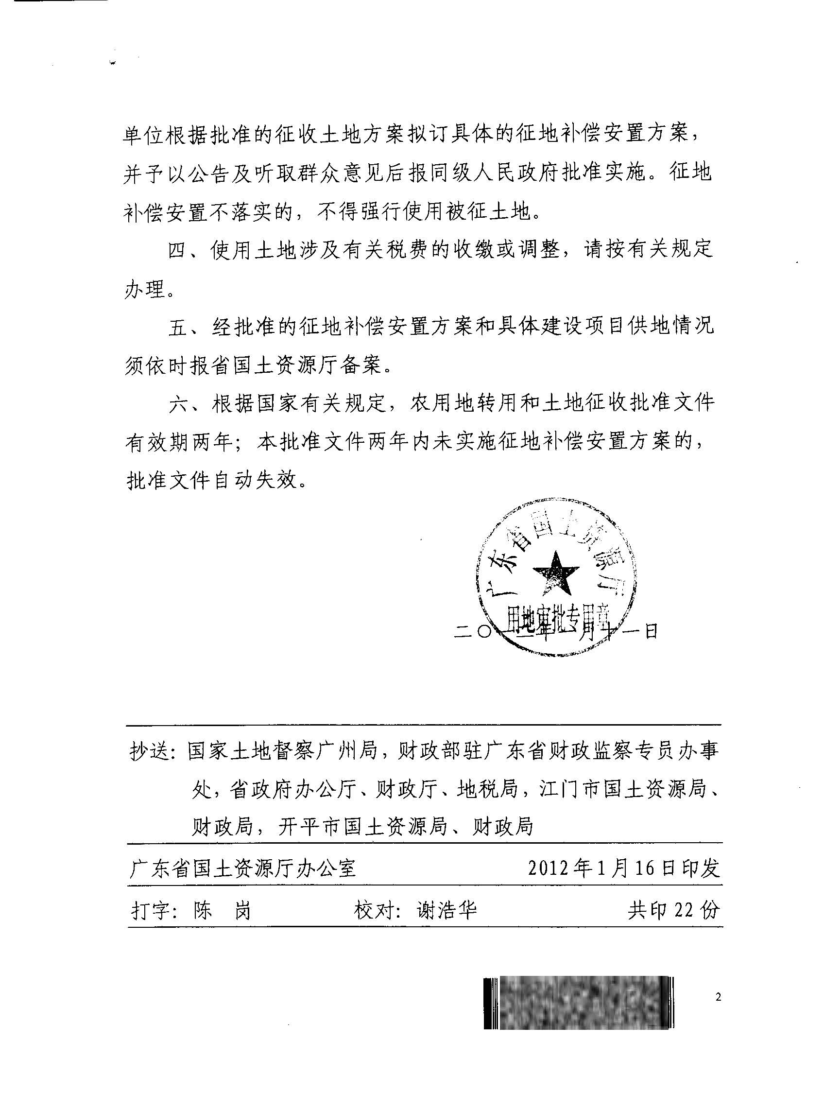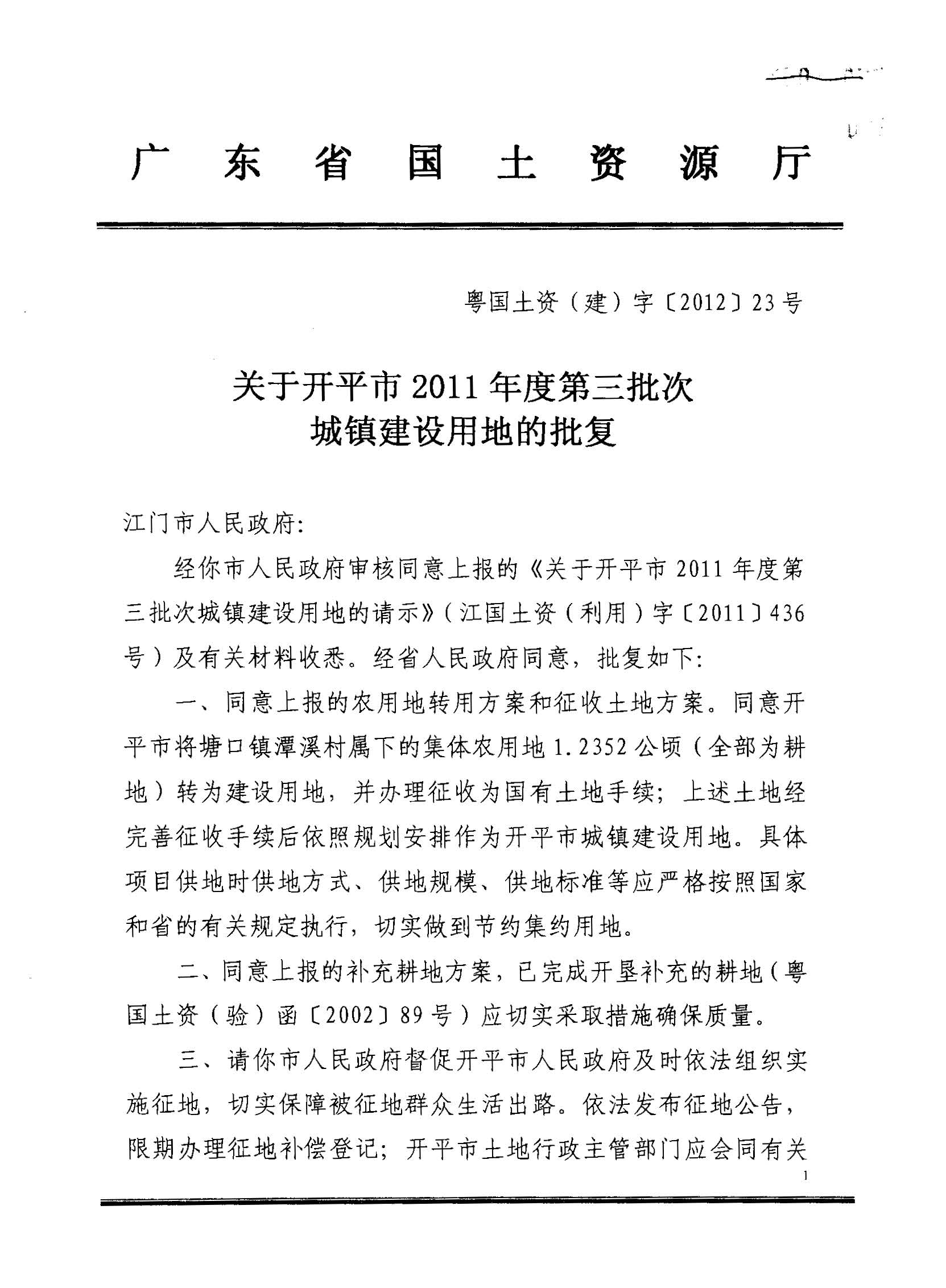 開平市2011年度第三批次城鎮建設用地的批復