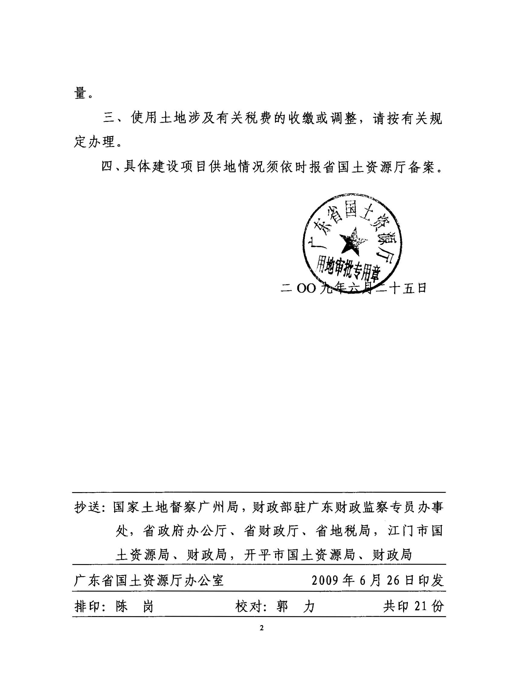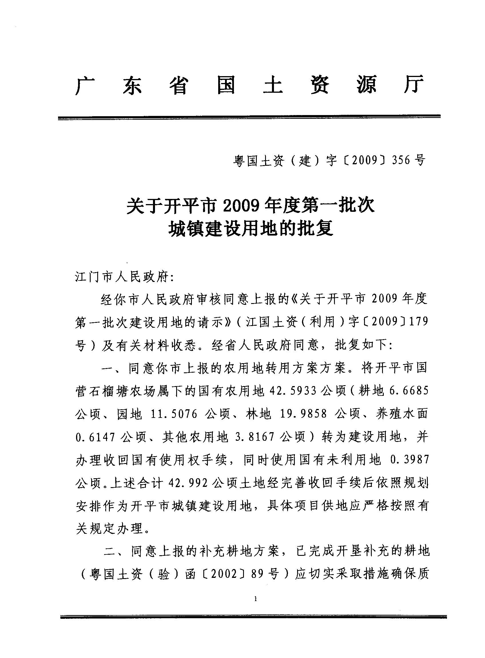 開平市2009年度第一批次城鎮(zhèn)建設用地的批復