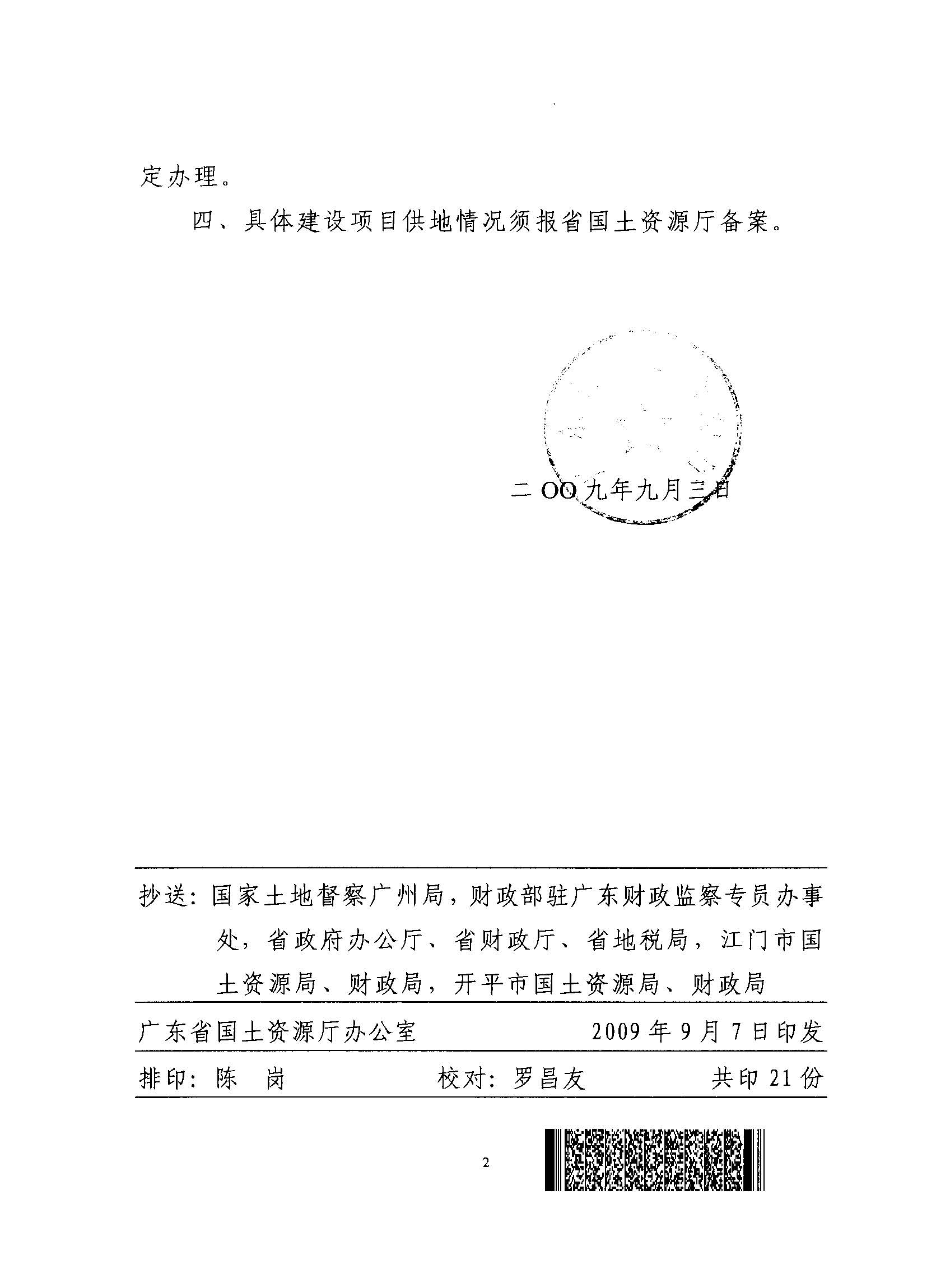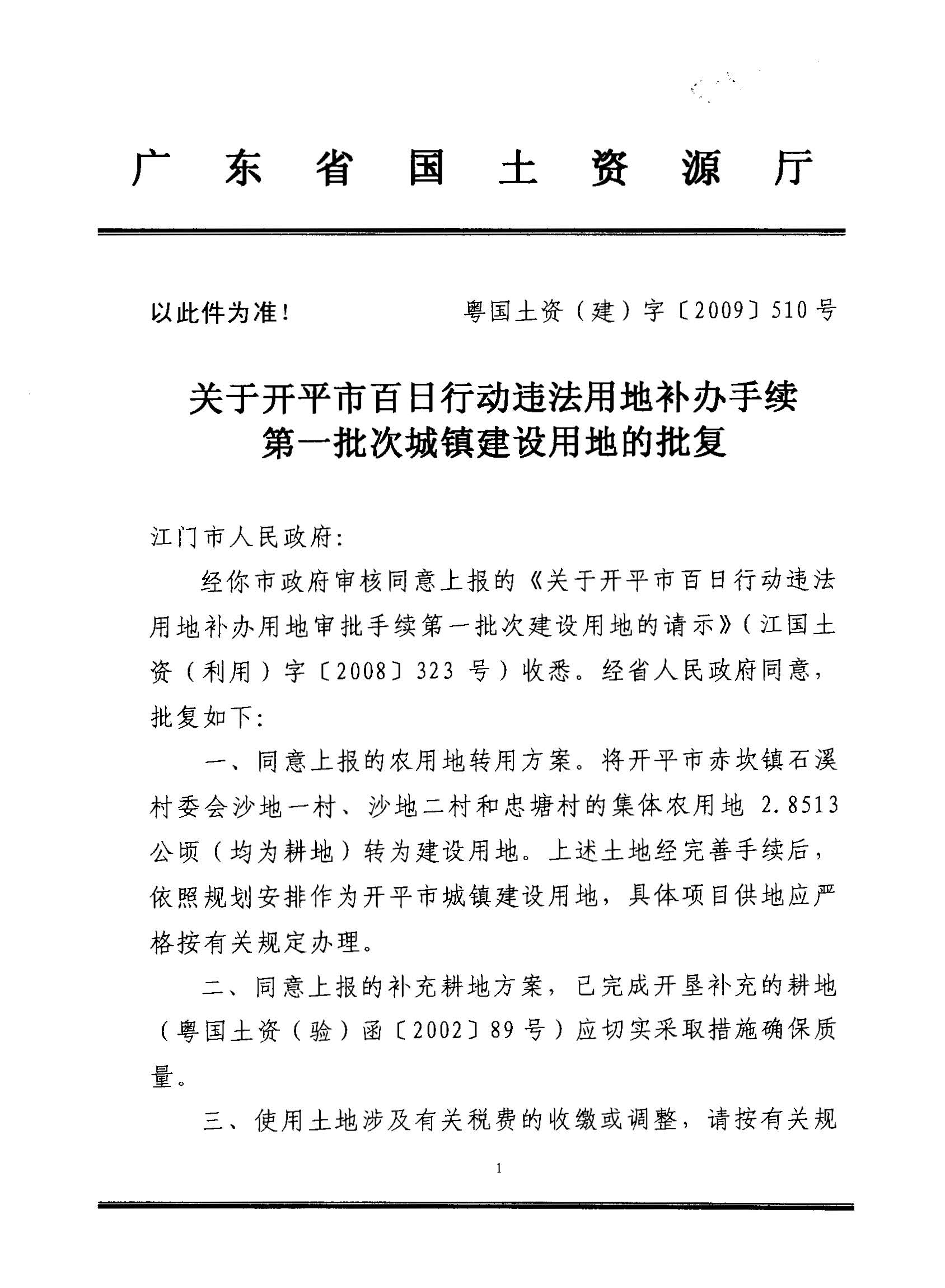 開(kāi)平市百日違法用地補(bǔ)辦手續(xù)第一批次城鎮(zhèn)建設(shè)用地的批復(fù)