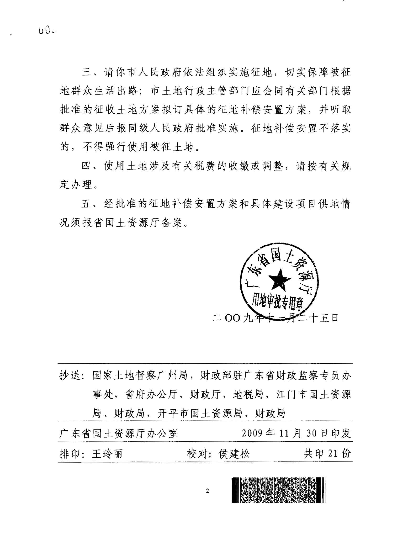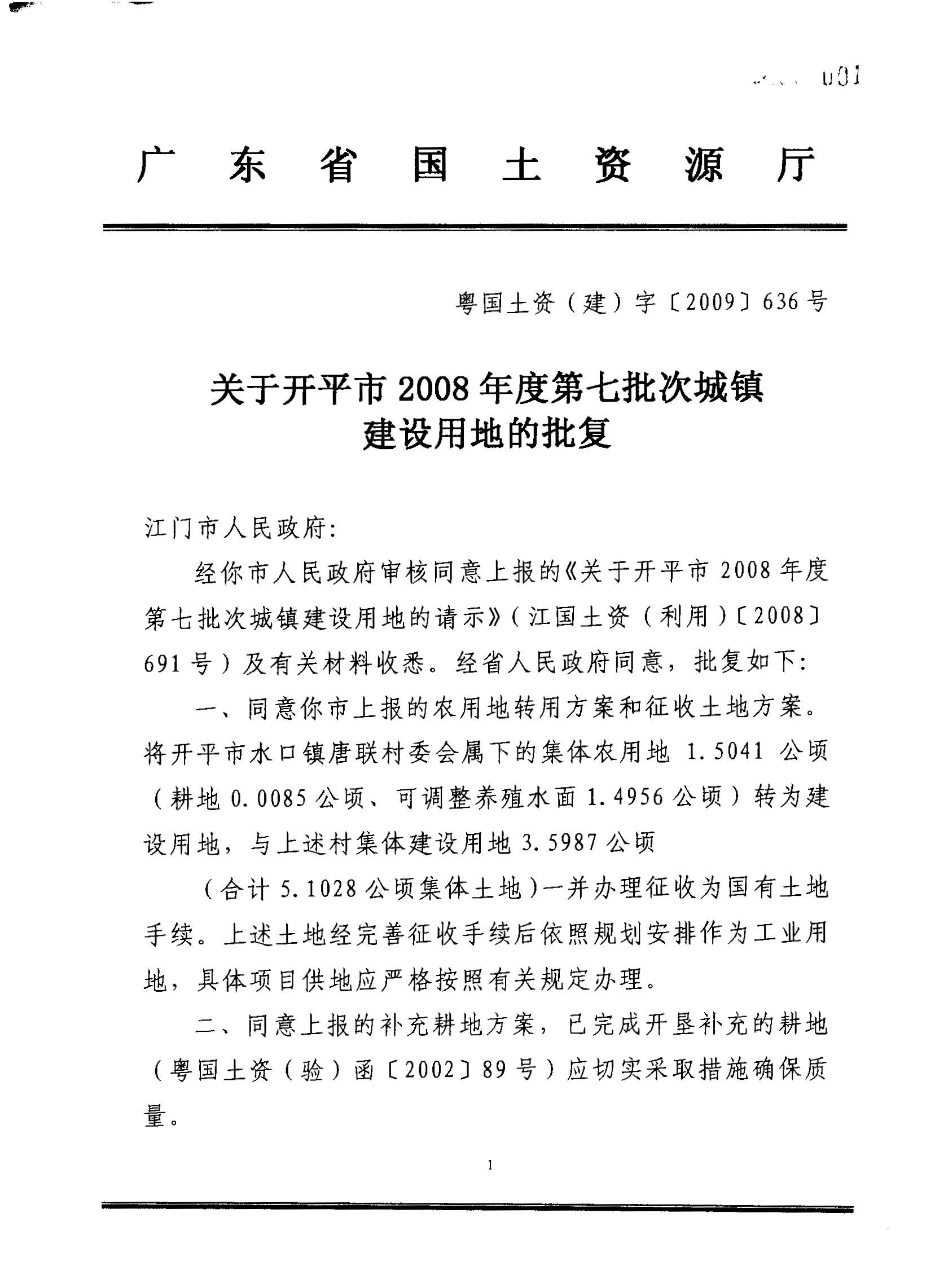 開平市2008年度第七批次城鎮(zhèn)建設(shè)用地的批復(fù)