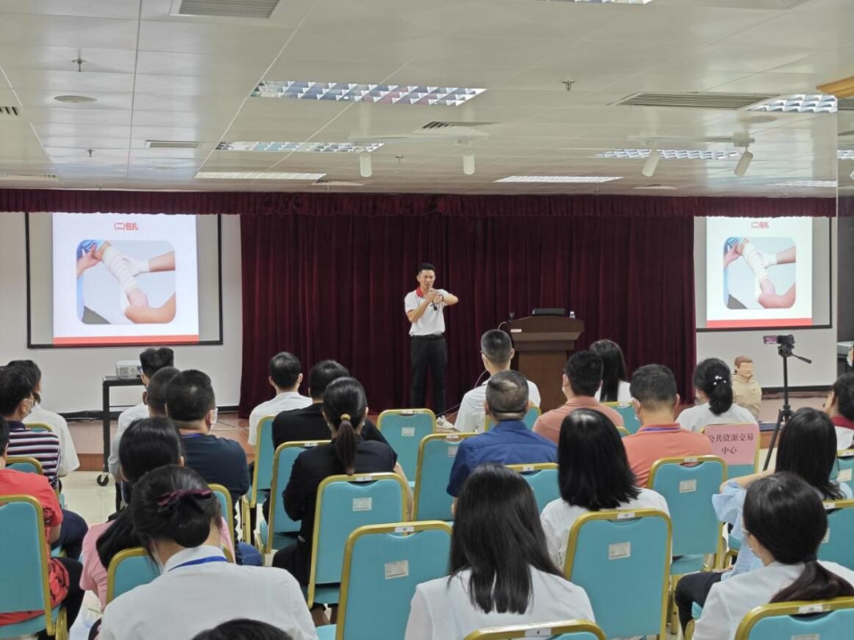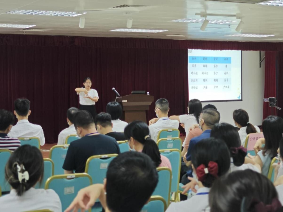 防范始于行”為主題的急救知識培訓(xùn)。課上進行了止血、包扎、溺水、家庭急救等理論知識講解以及進行了現(xiàn)場實操演示。 隨后,開平市特殊教育學(xué)校余揚君老師通過現(xiàn)場教學(xué)、實操練習(xí)、現(xiàn)場抽查等方式,重點圍繞政務(wù)服務(wù)類等方面用語開展手語教學(xué),由淺入深,幫助學(xué)員掌握日常政務(wù)服務(wù)手語交流技巧。 通過此次培訓(xùn),學(xué)員不僅提升了應(yīng)對突發(fā)意外傷害的緊急救援能力,更掌握了與聽障人士交流的基本手語,提升自身手語溝通能力。接下來,市行政服務(wù)中心將以創(chuàng)建“廣東省政務(wù)服務(wù)標(biāo)桿大廳”為目標(biāo),打造適老化、適殘化便民服務(wù)大廳,全力配合我市文明城市創(chuàng)建工作,讓政務(wù)服務(wù)更有溫度和深度。