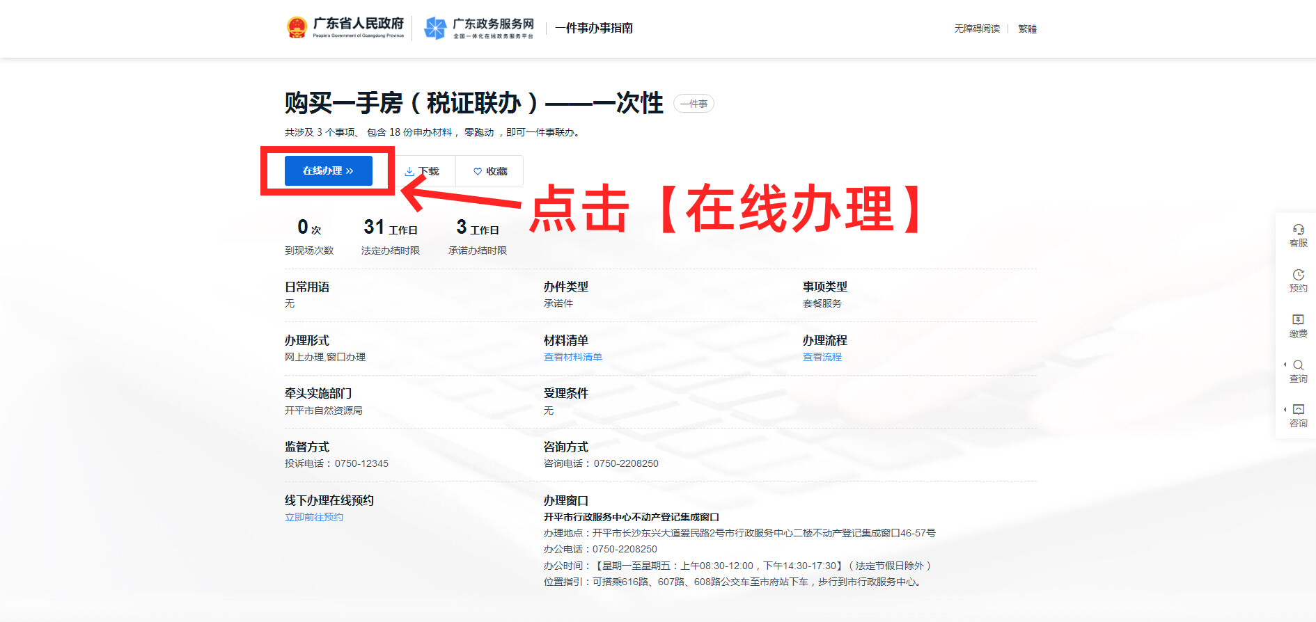 第四步:點擊【在線辦理】(更換圖片)