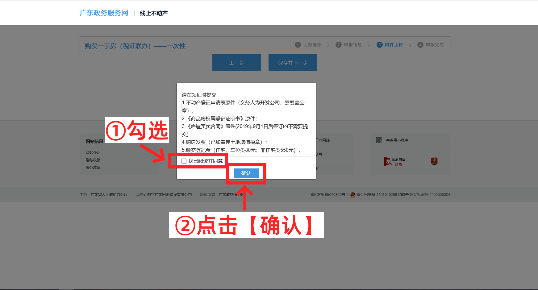 第八步:請認真查看在領證時所需提交的文件,勾選【我已閱讀并同意】→點擊【確認】(更換圖片)