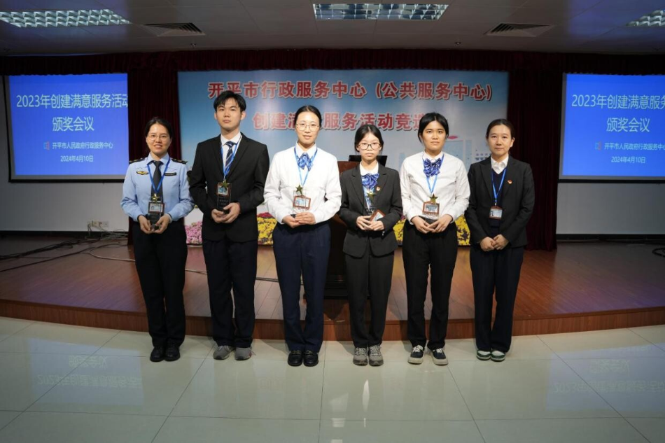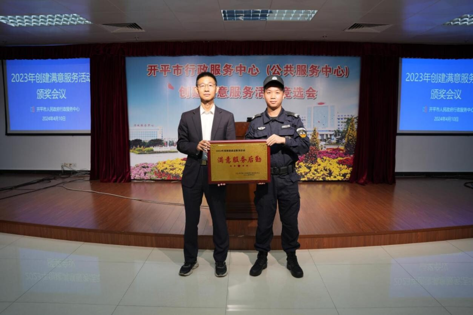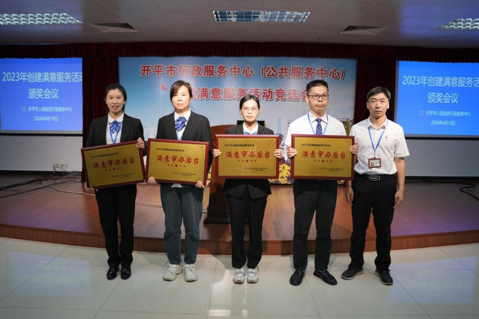 4月10日下午,開平市行政服務中心召開省政務服務技能大賽動員及2023年度創建滿意服務活動表彰大會,市政務服務數據管理局主要領導,行政服務中心全體職工以及中心服務窗口,審辦后臺,服務之星代表參加了此次大會。 會議首先傳達了第一屆全省政務服務技能大賽江門市參賽人員選拔工作要求,詳細分析廣東省標桿政務服務中心指標數據,為全面推動我市政務服務能力提升,樹立政務服務隊伍的良好形象,打造良好營商環境添磚加瓦。 隨后,進行了2023年度創建滿意服務活動表彰。為加強服務窗口、審辦后臺、服務后勤管理,促進機關作風建設,進一步提升工作人員的政治素質和業務能力,強化責任意識、服務意識、效率意識和創先爭優意識,市行政服務中心深入開展創建滿意服務活動,并評選出5個“滿意服務窗口”、4個“滿意審辦后臺”、1個“滿意服務后勤”以及10名“服務之星”。 市政數局黨組書記、局長龔偉強同志為5個“滿意服務窗口”的獲獎代表頒發獎牌 市政數局黨組成員、行政服務中心主任顏劍超同志為4個“滿意審辦后臺”獲獎代表頒發獎牌 市政數局副局長武勝利同志為“滿意服務后勤”代表頒發獎牌 市行政服務中心副主任周建寧同志為“服務之星”獲獎者頒發獎杯 市行政服務中心副主任張玉立同志為“服務之星”獲獎者頒發獎杯 通過此次會議,全體職工將以先進為榜樣,堅持以習近平新時代中國特色社會主義思想為指導,凝心聚力、接續奮斗,積極提升政務服務能力,在全面建設社會主義現代化國家新征程中展現我們政務服務的新擔當、新作為。