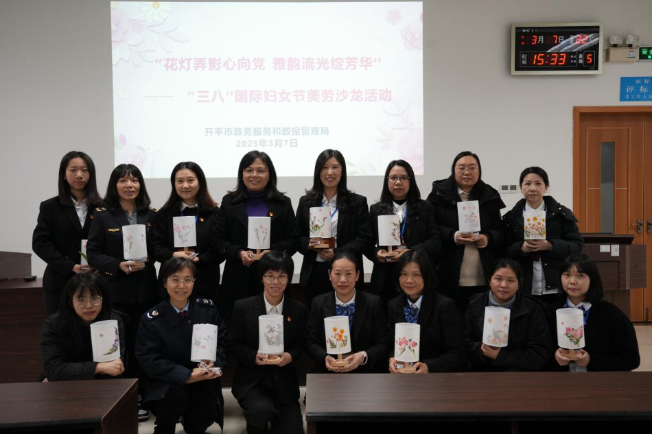 雅韻流光綻芳華”美勞沙龍--黨建帶工青婦團建活動。 活動首先由市政務服務和數據管理局婦女委員會主任陳春穎同志帶領深入學習貫徹省婦女第十四次代表大會精神。通過學習大會精神,進一步凝聚了全體女干部職工的力量,激發工作熱情,充分發揮“她”力量。 接著,由市行政服務中心導辦窗口組長梁柳開進行“強國復興有我”百姓故事分享。全體女干部職工對巾幗榜樣產生了崇高敬意,紛紛表示要向先進學習,積極提升業務素質和服務水平,帶著真心和感情服務群眾,讓群眾感受到政務服務的溫度。 最后,開展了壓花臺燈美勞沙龍活動。女干部職充分發揮想象和創造力,細致地將花朵、莖葉進行裁剪、構圖擺放、修正,然后將花材粘貼、固定,并為臺燈貼膜,經過一番精心點綴后,一盞盞繁花盛開的燈展現眼前。女干部職工臉上都洋溢著愉快的笑容,在溫馨氛圍的浸染中,享受著壓花藝術創作的獨特魅力。 此次活動進一步深化黨建引領,提升組織凝聚力,營造了關心關愛女職工的良好的節日氛圍,有利于引導女干部職工同心同德、踔厲奮發、勇毅前行,為奮力推動我市經濟社會高質量發展實現新突破貢獻巾幗力量。