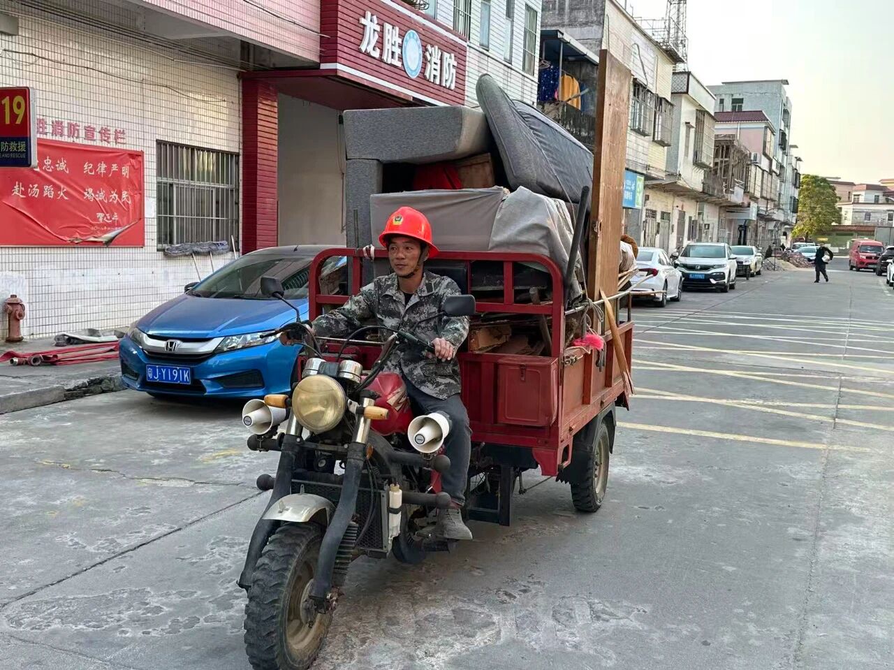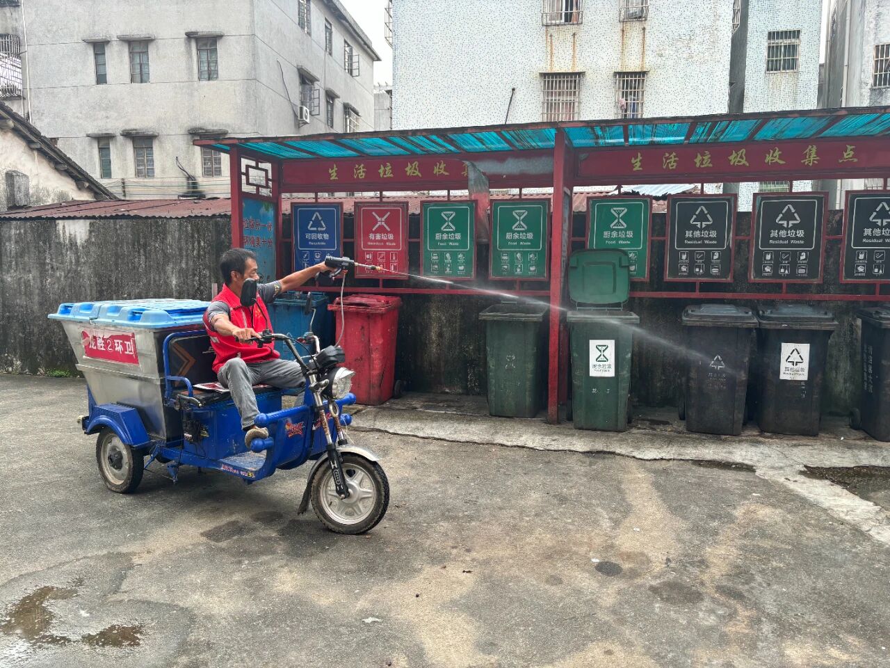 在開平市龍勝墟社區,總能看到一個忙碌的身影,他時而身著迷彩服,在龍勝中學操場上帶領新生軍訓;時而在街巷間俯身清理垃圾,細致監督環境衛生;時而駕駛三輪車穿梭于墟鎮,收集清運大件廢棄物;時而又背負消殺設備,堅守在防蚊滅蚊一線。這位身影的主人,正是龍勝墟社區“兩委”干部、退伍軍人——吳潤球。