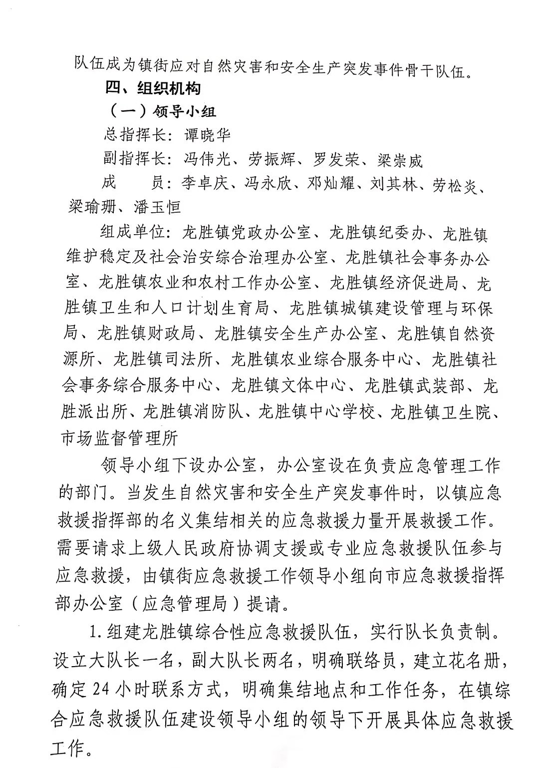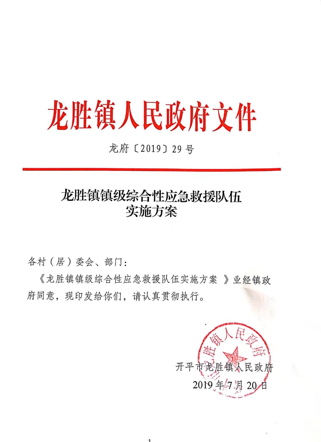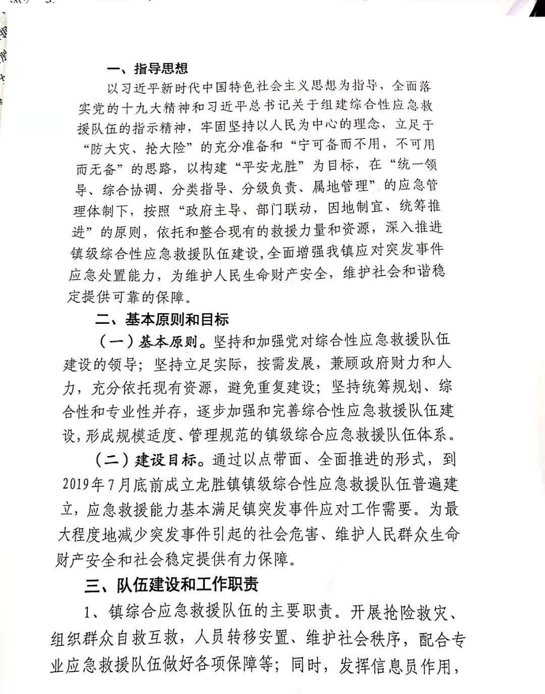 龍勝鎮(zhèn)鎮(zhèn)級綜合性應急救援隊伍實施方案