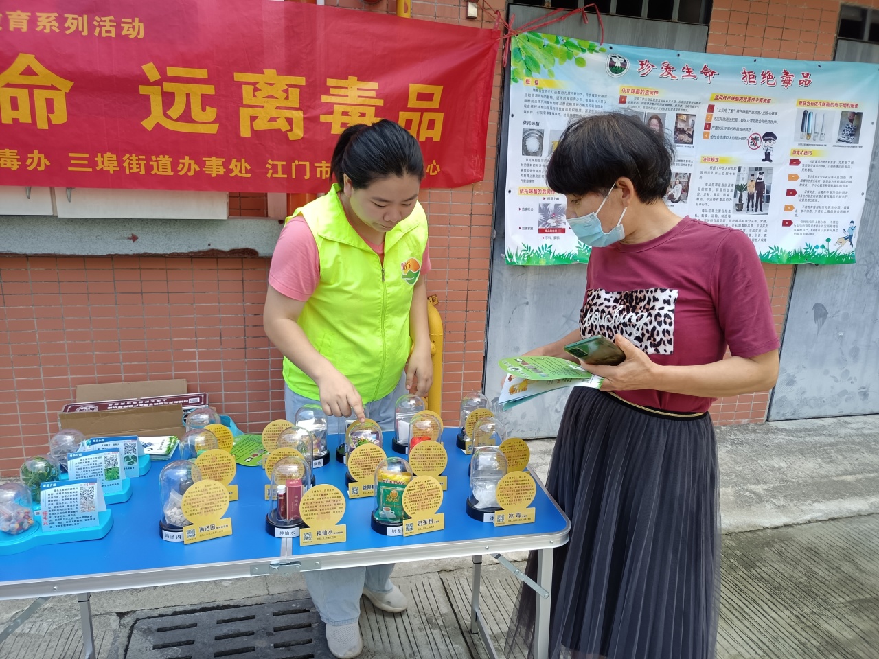 為進一步宣傳新型毒品濫用危害,全面普及防范知識,防止新精神活性物質流入市場,切實提高全民禁毒意識和防毒能力,8月3日上午,三埠街道禁毒工作領導小組辦公室聯合江門市昭宇社工中心在富麗花園開展新型毒品替代品“依托咪酯”禁毒宣傳活動。 活動現場,禁毒社工宣講員通過展板和宣傳單張內的圖文資料,詳細向群眾科普“依托咪酯”的外觀、濫用方式、吸食后的狀態以及危害等知識;提醒群眾目前社會上出現一些不法分子利用“依托咪酯”的麻醉作用,將其用作毒品的替代品進行銷售,嚴重擾亂正常的藥品管理秩序;呼吁群眾要樹立珍愛生命、遠離毒品的正確觀念,遠離“依托咪酯”,拒絕不良誘惑,積極配合公安機關和市場監管部門的積極檢舉濫用“依托咪酯”等行為。 此次防范毒品濫用宣傳教育活動,廣泛傳播了“健康人生、綠色無毒”理念,進一步加強了他們對麻醉類藥品、精神類藥品的認知,切實增強廣大群眾對新型毒品、軟性毒品的識別能力和防范能力,為構建無毒三埠奠定堅實的群眾基礎。