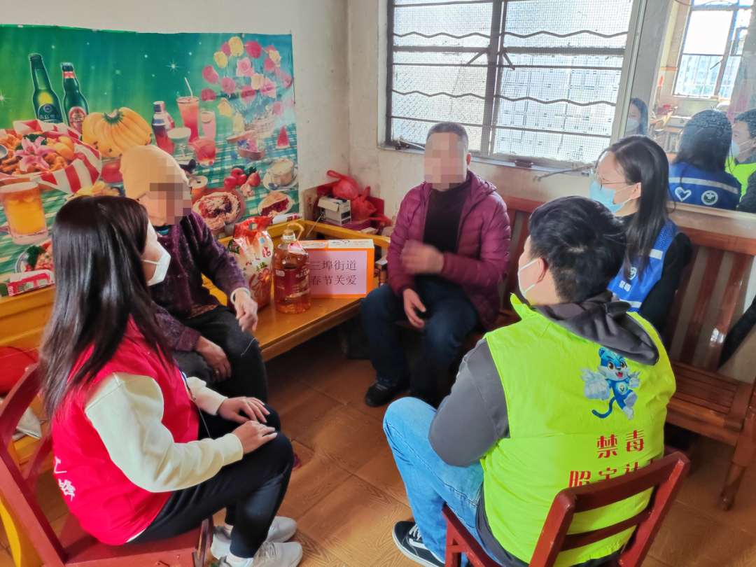 年初歲末,天寒情暖。為深入落實(shí)禁毒“應(yīng)幫盡幫”平安關(guān)愛工作,三埠街道禁毒工作領(lǐng)導(dǎo)小組聯(lián)合各村(社區(qū))黨員干部以及江門昭宇社工開展“新春暖冬行·禁毒心連心”關(guān)愛活動(dòng)。