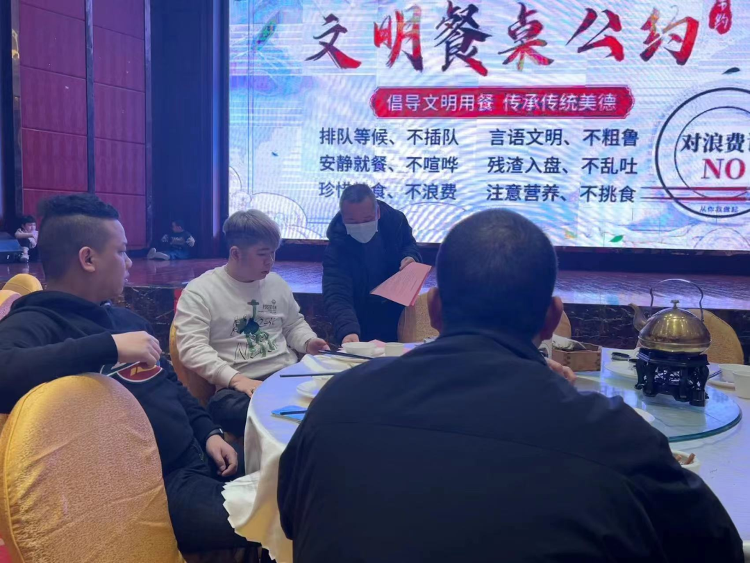 文明在心中,落實于餐桌。活動中,主持人提倡大家文明用餐,指出隨著廣大市民健康意識的提升,反對浪費、崇尚節約等各項制止餐飲浪費工作已成必然趨勢。倡導大家自覺遵守公共道德規范,不肆意喧嘩,不在禁煙場所吸煙,時刻注意他人的用餐感受;講究用餐衛生,不帶寵物進餐廳,不隨意造成用餐環境污染;低碳環保,使用“公筷公勺”,杜絕使用一次性筷子;開車不喝酒,酒后不駕車。