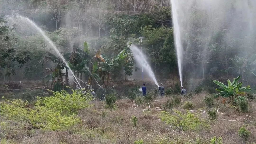 在模擬的仁親村委會(huì)象山公園“森林火災(zāi)”現(xiàn)場(chǎng),應(yīng)急搶險(xiǎn)隊(duì)員們分工合作、協(xié)同作戰(zhàn),快速鋪設(shè)好消防水管,啟動(dòng)高壓水泵、風(fēng)力滅火器及使用打火棒等滅火工具進(jìn)行撲滅,對(duì)火情迅速處理。同時(shí)做好人員安全撤離、余火清理、現(xiàn)場(chǎng)留守等后續(xù)工作,做到“打早、打小、打了”,應(yīng)急救援演練達(dá)到預(yù)期效果。
