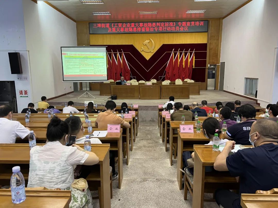 近日,應急管理部印發了《工貿企業重大事故隱患判定標準》(中華人民共和國應急管理部令第10號),自2023年5月15日起施行。 為進一步提升應急管理人員對重大風險辨識管控的能力,深化隱患排查治理實效,5月16日上午,三埠街道召開《工貿企業重大事故隱患判定標準》專題宣貫培訓及重大事故隱患排查整治專項行動動員會議,推動企業落實安全生產主體責任,及時消除各類安全隱患,助力企業高質量發展。街道安委會成員部門、各村(社區)、基層站所、企業等負責人共100多人參加了會議。 街道黨工委委員、辦事處副主任周覺能通報了近期國內多起較大以上安全事故,總結了三埠街道4月以來的安全生產和消防安全工作情況,并部署了下一階段的安全生產和消防安全工作。會議以近期國內安全事故為鑒,提出了七方面工作要求:一是整治工貿企業重大事故隱患。各工貿企業要落實安全生產主體責任,認真學習《工貿企業重大事故隱患判定標準》,按照國務院安委會印發的《全國重大事故隱患專項排查整治2023行動總體方案》,開展重大事故隱患排查整治工作。二是嚴防各類火災事故。各企業和街道應急、消防等相關部門要加強對工貿企業的檢查督導,嚴查違規用火用電等消防安全問題。從嚴整治違規住人“三小”場所,采取安裝可聯網式無線煙感器、實體墻封堵、安裝防火門、開設逃生窗和配備滅火器材等技防措施,消除安全隱患。三是嚴防分租式廠房事故。各村委會(社區)要組織人員,全面排查分租式廠房安全狀況,堅決整治違規分租、違規電氣焊、違規儲存易燃易爆物品、違規占用堵塞逃生通道等“廠中廠”常見的安全亂象。四是嚴防交通安全事故。著力加強道路交通安全防范,同時要加強客船、漁船等重點船舶的安全監管。五是嚴防建筑施工事故。緊抓建筑施工安全各項工作,嚴厲打擊各類違建行為。六是抓實抓細三防工作。各村委會(社區)、各相關部門要扎實做好防風防汛的應急準備,進一步完善三防工作各項制度和相關設施設備,做好三防值班值守工作。七是廣泛開展安全宣傳。5月12日是我國第15個全國防災減災日,今年6月是第22個全國“安全生產月”。要以此為契機,加強防災減災和安全生產宣傳,增強企業群眾關于防災減災和安全生產的意識。