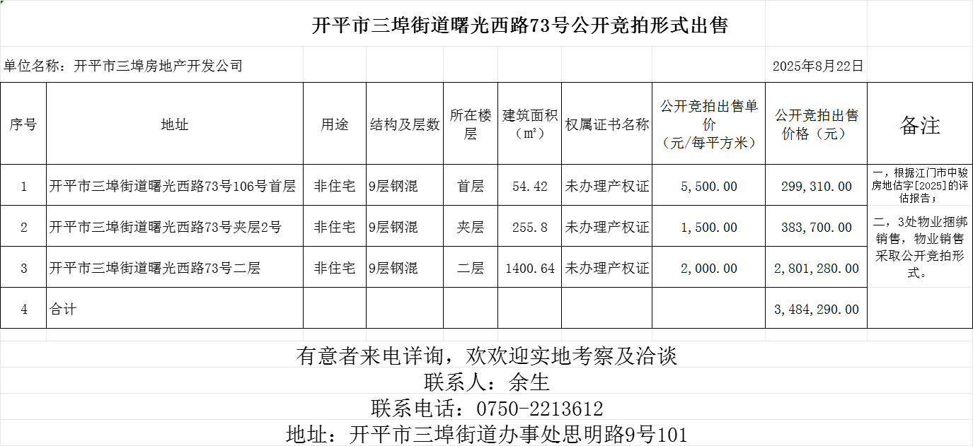 開平市三埠街道曙光西路73號(hào)公開競(jìng)拍形式出售
