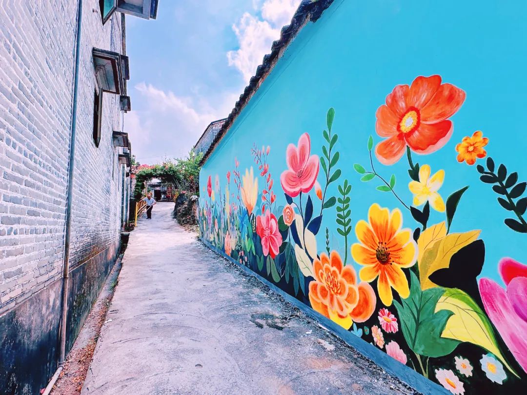 走進水口鎮(zhèn)泮村村,宜居鄉(xiāng)村的濃郁氣息撲面而來。上坑、向北、余慶等幾條村莊村道兩旁的農(nóng)房外墻和公共空間上,原本灰暗斑駁、樣式單調(diào)的院墻不復存在,取而代之的是一條條干凈整潔的村內(nèi)道路和一面面多彩斑斕的創(chuàng)意墻繪,不僅為古老的村落披上了新裝,更點亮了鄉(xiāng)村振興的新篇章。