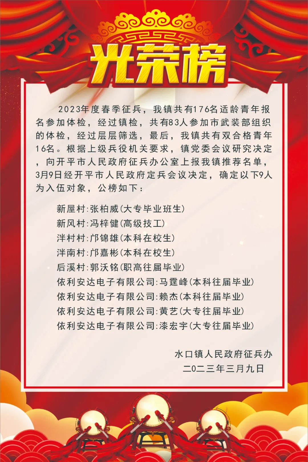 2023年春季征兵工作中,全鎮(zhèn)共有176名適齡青年響應(yīng)號(hào)召,踴躍報(bào)名參軍。經(jīng)過(guò)嚴(yán)格把關(guān)、層層篩選,最終9名雙合格青年確定為入伍對(duì)象,即將踏上投身國(guó)防、報(bào)效祖國(guó)的新征程。