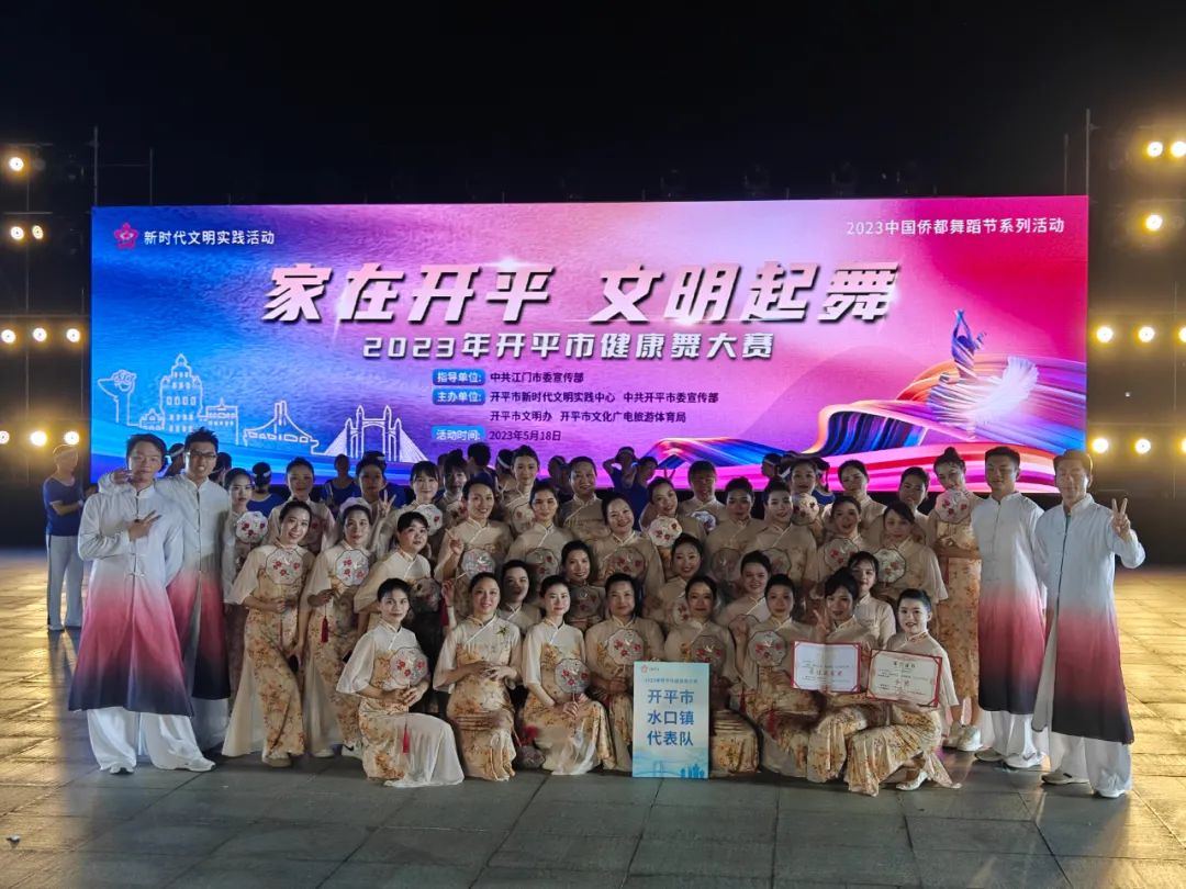 5月18日晚,2023中國(guó)僑都舞蹈節(jié)系列活動(dòng)——“家在開(kāi)平 文明起舞”2023開(kāi)平市健康舞大賽在市人民公園舉行,開(kāi)平市水口鎮(zhèn)代表隊(duì)以極具本土特色的舞蹈《碉樓故鄉(xiāng)》榮獲金獎(jiǎng)、“最佳風(fēng)采獎(jiǎng)”,充分展現(xiàn)了水口鎮(zhèn)朝氣蓬勃、積極向上的文明新風(fēng)貌。