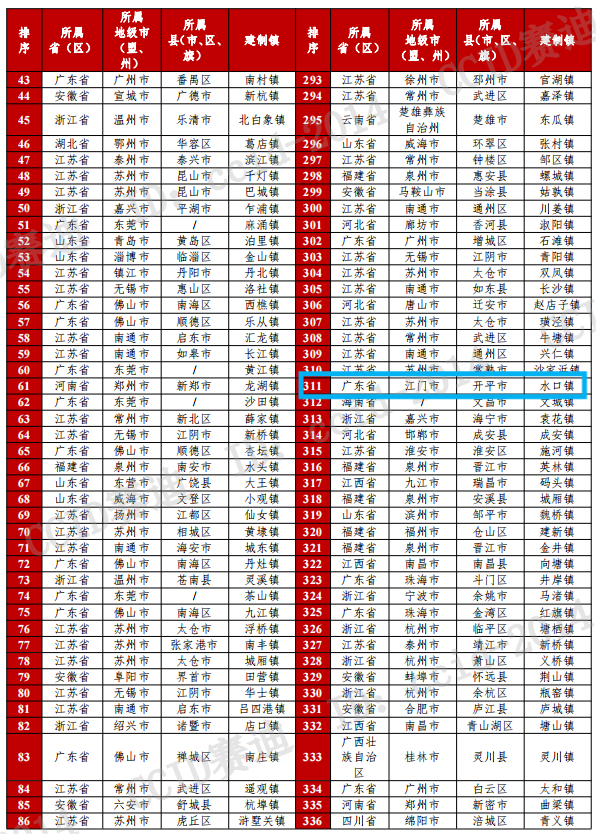 8月22日,2023鎮(zhèn)域經(jīng)濟(jì)500強(qiáng)暨西部50強(qiáng)發(fā)布,開(kāi)平市水口鎮(zhèn)榜上有名,位列311位,居江門(mén)首位。