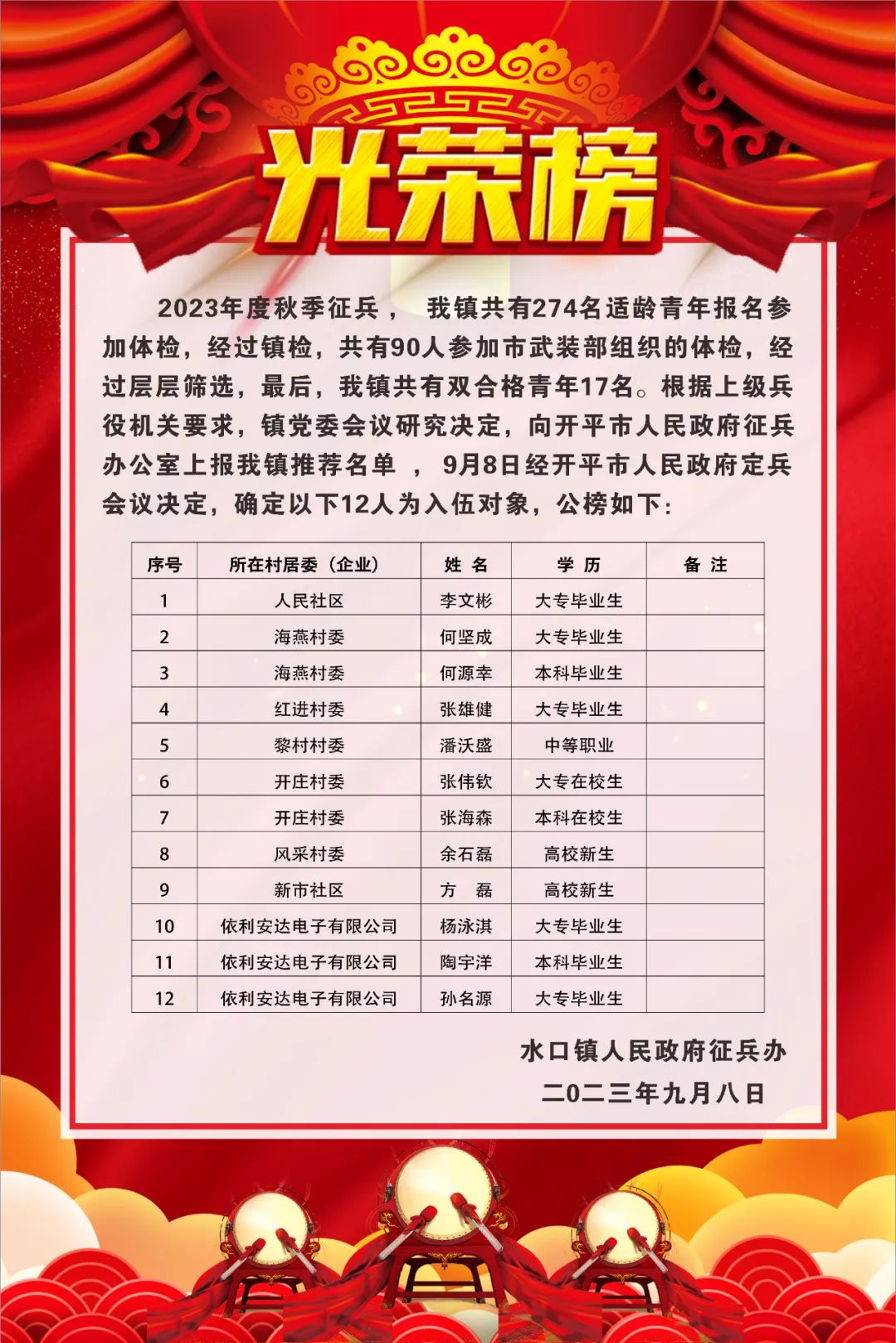 2023年秋季征兵工作中,全鎮(zhèn)共有274名適齡青年響應(yīng)號(hào)召,踴躍報(bào)名參軍。經(jīng)過(guò)嚴(yán)格把關(guān)、層層篩選,最終12名雙合格青年確定為入伍對(duì)象,即將踏上投身國(guó)防、報(bào)效祖國(guó)的新征程。