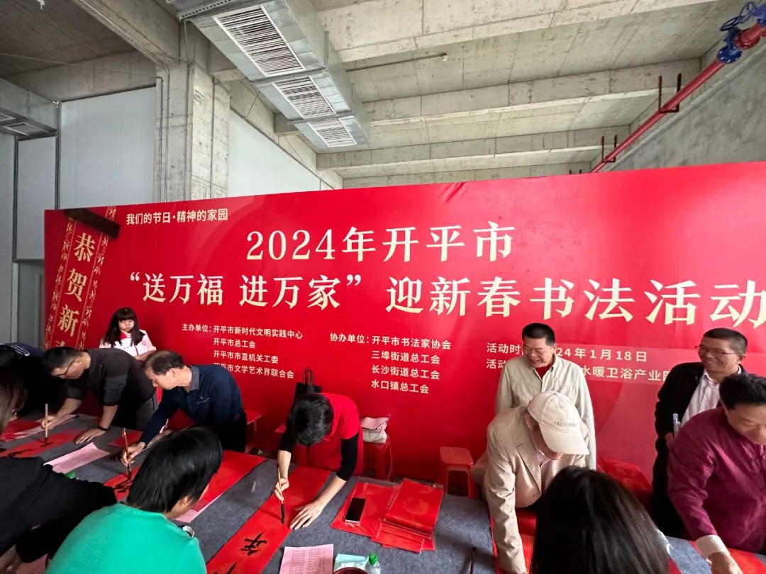 揭牌儀式結束后,劉威龍一行實地考察了開平水暖衛浴產業園職工服務中心和參觀了2024年開平市“送萬?!みM萬家”迎新春書法活動,詳細了解了服務中心的建設情況、運行情況、創新功能以及職工日常生產生活等,并對接下來如何進一步發揮好服務基層、服務職工作用提出指導性意見。