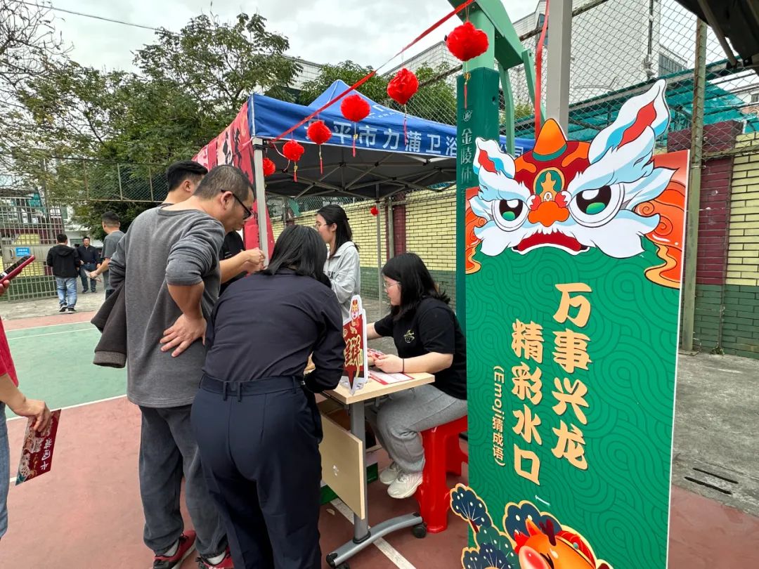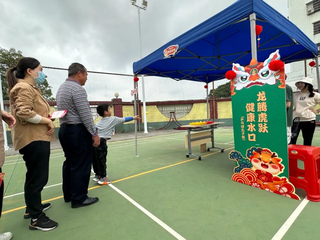 游園活動現(xiàn)場設(shè)置了豐富的游戲項目,分別是“欣欣向龍,幸福水口(粘球飛鏢)”“龍飛鳳舞,魅力水口(紙杯抽紙)”“雙龍戲珠,團結(jié)水口(旱地龍舟)”“龍行大運,奮進水口(滾滾樂)”“逾躍龍門,團結(jié)水口(筷子取杯)”“龍騰虎躍,健康水口(乒乓球五子棋)”“萬事興龍,精彩水口(emoji猜成語)”“好運龍龍,活力水口(套圈圈)”“‘龍’重登場。啟起新歲(祝福寄語)”。