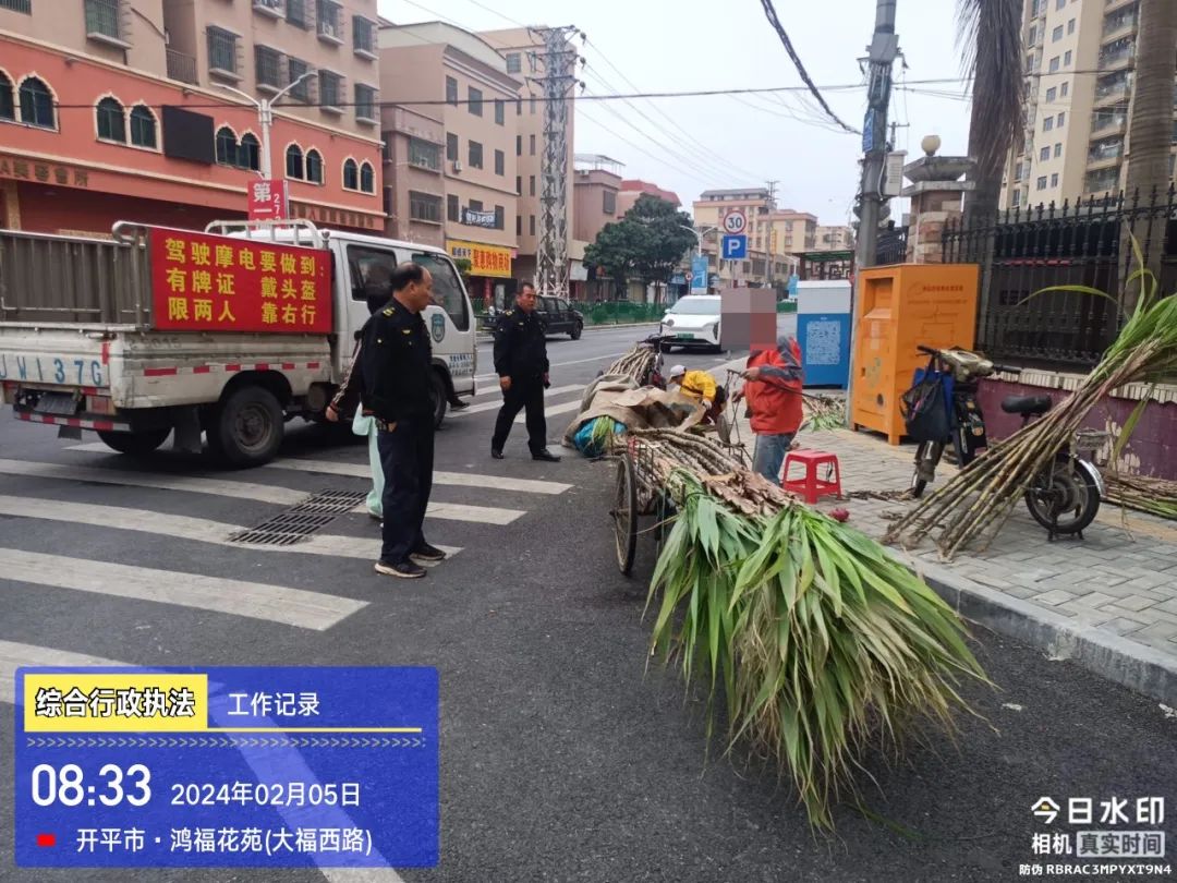 (一)秩序維護不打烊。春節期間,針對商鋪店外經營、流動攤販占道經營增多的情況,執法辦加強對主次干道、花市、商超市場等周邊區域的管理力度,對檢查中發現的占道經營行為,采取包容審慎、教育勸導的“柔性執法”方式,讓城市管理有“年味”更有“人情味”。