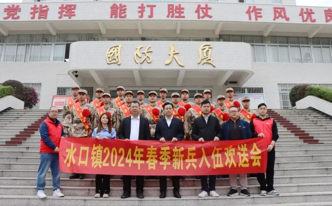風華正茂抒壯志,參軍報國踏征程。3月15日上午,水口鎮組織舉行2024年春季新兵入伍歡送儀式,即將踏上光榮之旅、開啟軍營生涯的16名新兵送行。水口鎮黨委書記司徒錦泉,鎮黨委副書記、鎮長胡萬程參加歡送儀式。