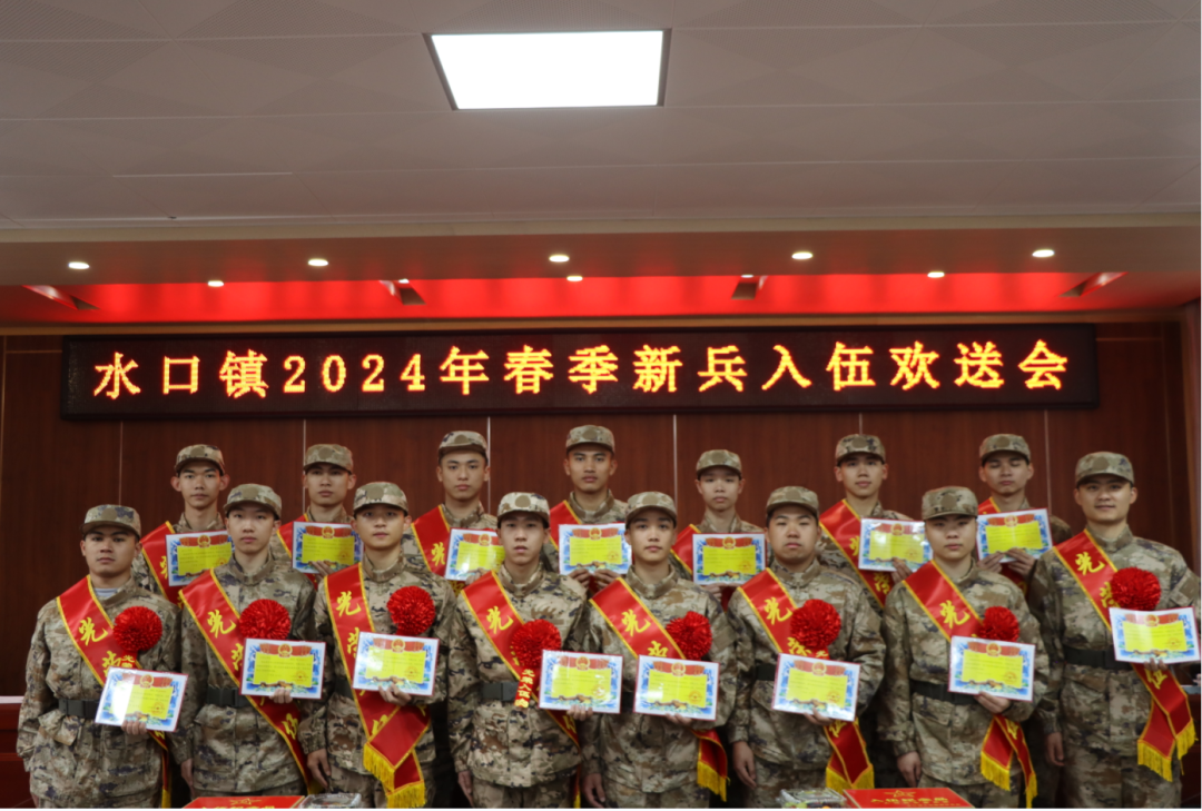 2024年春季征兵,水口鎮共有146名適齡青年報名應征青年積極響應國家號召,參加征兵體檢,接受嚴格挑選。經過體檢、政考、定兵等環節,水口鎮共有16名優秀青年光榮入伍。