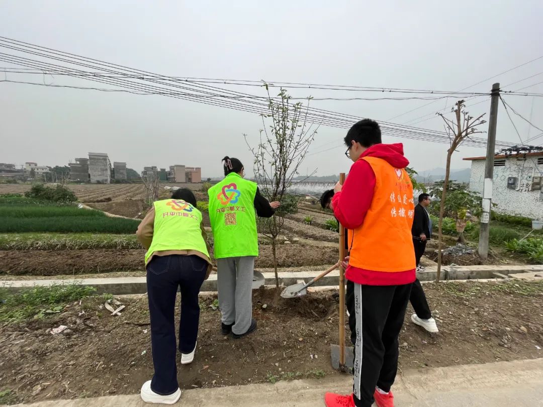 植樹現(xiàn)場,大家紛紛拿起工具,分工協(xié)作,領取樹苗進行栽種,揮鍬鏟土、培實新土、提桶澆水,合力種下一棵棵樹苗。本次活動種植碧桃樹、勒杜鵑、紅絨球共110棵。新栽種的樹木迎風挺立在道路兩旁,綻放出勃勃生機,吐露著無限春意。