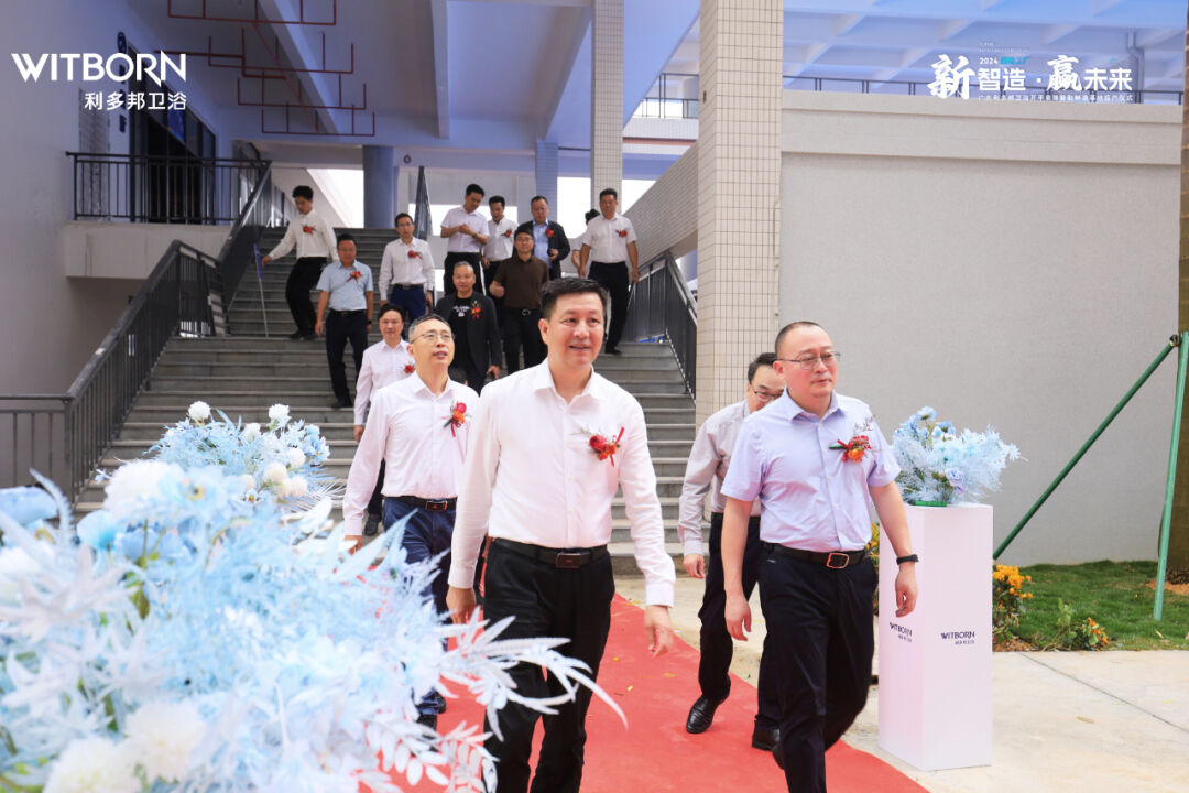儀式結束后,領導和嘉賓參觀利多邦衛浴生產線(企業供圖)