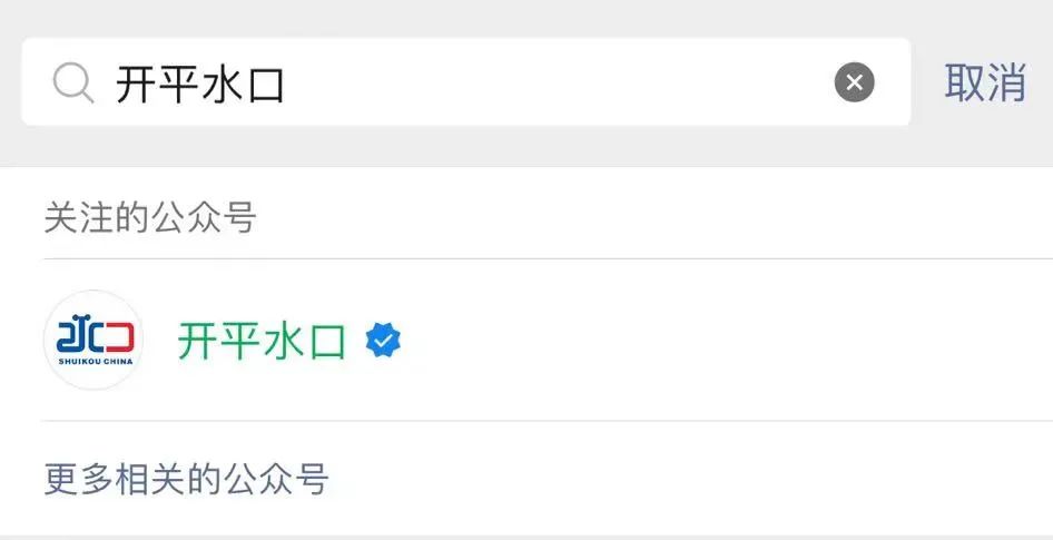 步驟一:微信搜索并關注【開平水口】公眾號。