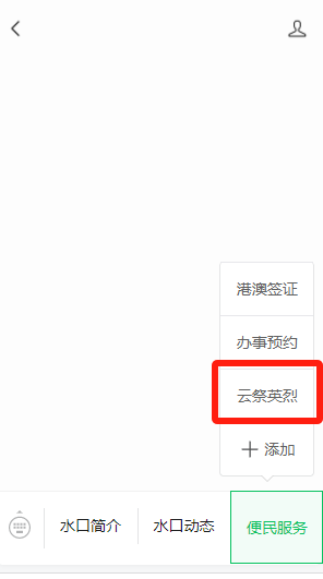 方式一、點擊菜單欄右下方【便民服務】—【云祭英烈】,進入云祭掃平臺。