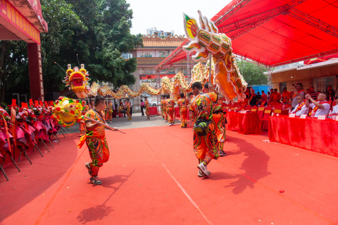 活動期間,彩龍飛舞,醒獅朝拜,炮竹連連,鑼鼓喧天,一派歡騰熱鬧景象。