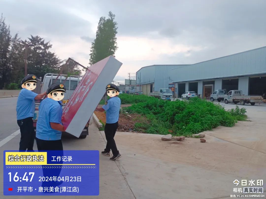(三)專項治理嚴管控。廣告牌、燈箱的占道擺放,既影響了市容市貌,又存在安全隱患。為進一步增強臨街商戶守法經營的意識,營造安全暢通出行的道路環境,近日,執法辦開展占道廣告牌專項整治,對轄區主次干道兩側、重要區域、背街小巷道路兩側占道擺放的戶外橫幅、廣告牌進行清理,切實打造干凈、有序、整潔美觀的城市環境。