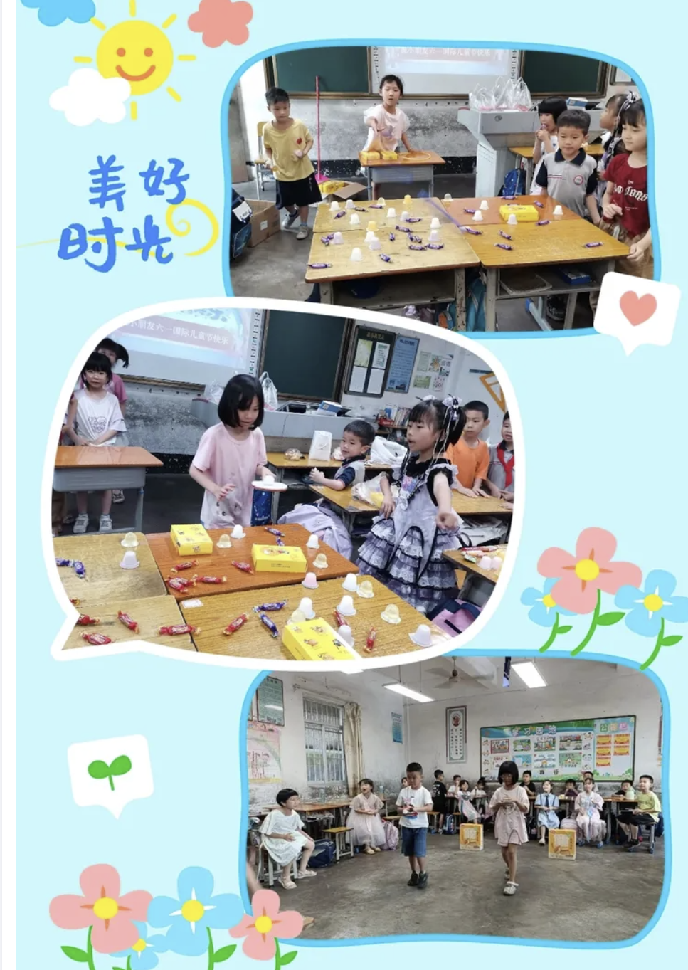 5月31日,致和小學舉辦“童年童趣,暢玩六一”慶“六一”活動,各班精心設計了各種游園項目,還對活動場地進行了精心布置。貼鼻子、夾珠子、投籃、盲人擊鼓、套圈圈、三人夾球……同學們在游玩的過程中不僅收獲開心和快樂,還鍛煉了觀察力,增進了團隊合作精神。整個校園充滿孩子們歡快的笑聲。