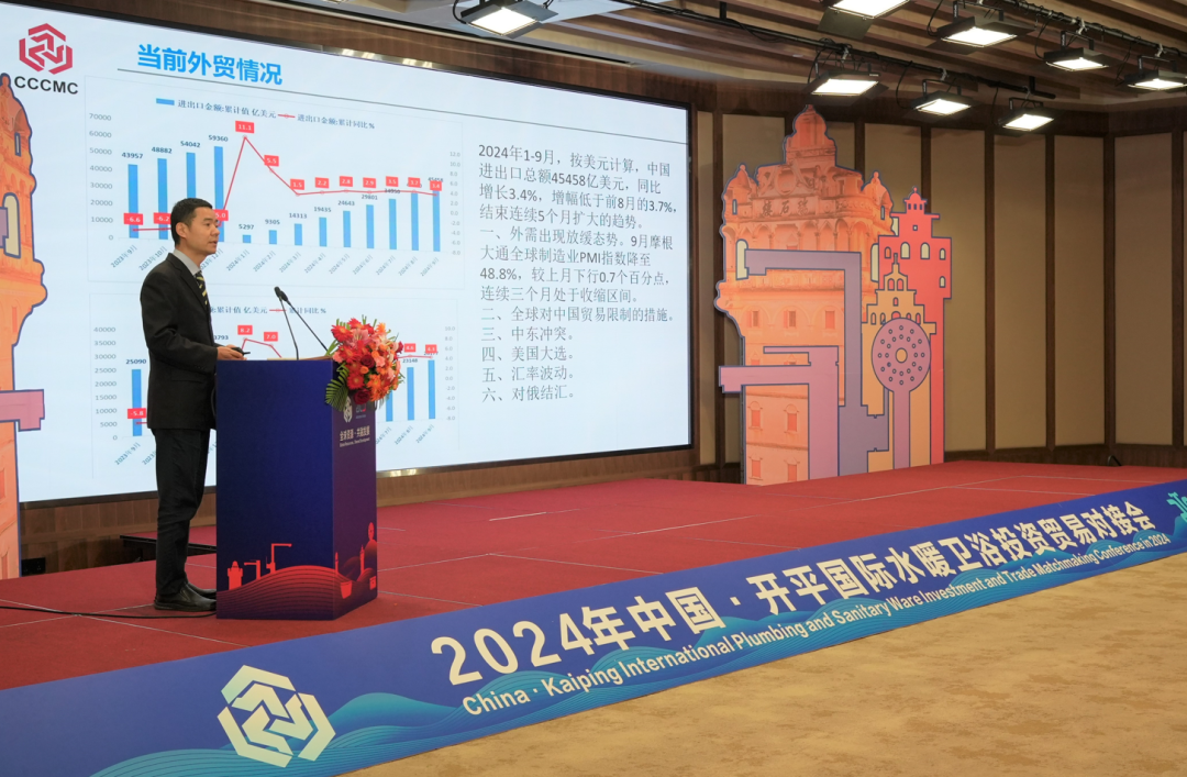 10月28日上午,2024年中國·開平國際水暖衛(wèi)浴投資貿(mào)易對接會暨廣東省開平水口水暖衛(wèi)浴國家外貿(mào)轉(zhuǎn)型升級基地成果展在赤坎華僑古鎮(zhèn)開幕,來自泰國、哥斯達黎加、巴基斯坦、伊朗、也門、蒙古、贊比亞等國家的客商歡聚一堂,共謀發(fā)展大計、共創(chuàng)合作共贏,為開平高水平對外開放和水暖衛(wèi)浴行業(yè)高質(zhì)量發(fā)展注入強勁動力。中國五礦化工進出口商會會長江輝,中國在非企業(yè)社會責任聯(lián)盟執(zhí)行委員會主席助理郭洪軍,商務部研究院研究員、博士生導師白明,開平市委副書記、政法委書記關耀東,副市長許永鋒,水口鎮(zhèn)黨委書記司徒錦泉,鎮(zhèn)黨委副書記、鎮(zhèn)長胡萬程等參加活動。