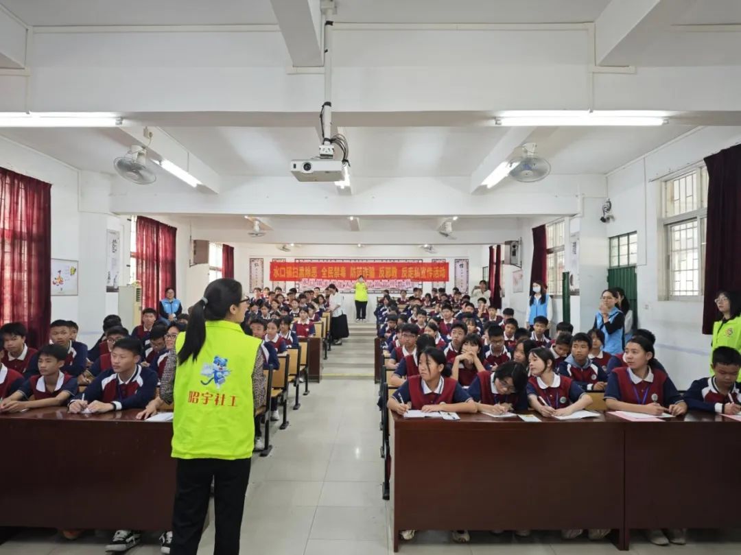 水口鎮(zhèn)“雙百”社工以“未成年人保護(hù)”為主題,結(jié)合青少年的年齡特點、身心發(fā)展規(guī)律,圍繞“校園生活、防溺水安全、預(yù)防未成年人犯罪、預(yù)防校園霸凌”等各類安全知識,以案釋法,向師生們普及了各類法律法規(guī),為廣大未成年人敲響警鐘。同時,通過生動的案例、形象的比喻,闡述了校園霸凌事件對青少年成長的危害以及對社會造成的不良影響,從而讓同學(xué)們了解到不良行為和違法犯罪的嚴(yán)重后果,清晰認(rèn)識到法律既是保護(hù)自身權(quán)益的有力武器,也是不可觸碰的行為底線,引導(dǎo)同學(xué)們自覺抵制不良行為,遵紀(jì)守法,勇敢向校園霸凌說“不”。