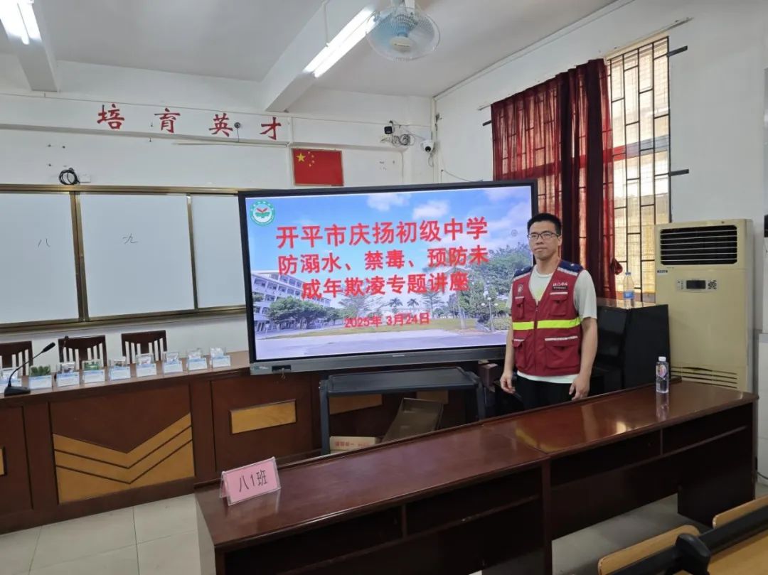 為進(jìn)一步提高未成年人法律意識和自我保護(hù)能力,切實維護(hù)青少年合法權(quán)益,營造未成年人健康成長的良好法治環(huán)境,3月24日,水口鎮(zhèn)平安法治辦聯(lián)合公服辦、綜合事務(wù)中心、婦聯(lián)等部門和網(wǎng)格員、禁毒社工到慶揚初級中學(xué)開展未成年人保護(hù)專題普法宣傳教育活動,為轄區(qū)廣大未成年人鋪就浸潤法治精神的護(hù)航“成長路”。