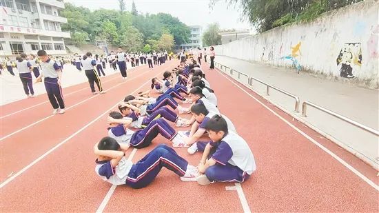 “一二一,一二一!”伴隨著清脆的口令聲,水口鎮龍塘小學的同學們以班級為單位,踏著整齊的步伐進入操場。他們精神飽滿,隊列如行云流水,瞬間將操場裝點成一片律動的海洋;另外一批學生正在進行“仰臥起坐挑戰賽”,一張張小臉憋得通紅,卻洋溢著笑容。