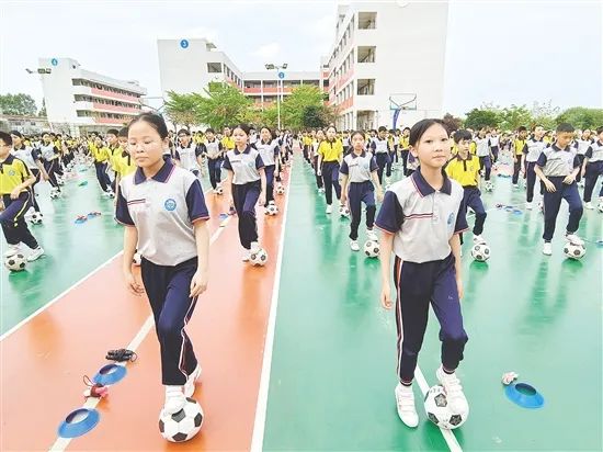 水口鎮第三小學的“足球馬克操”將球技展示與韻律結合,學生運球、轉身動作精準如教科書