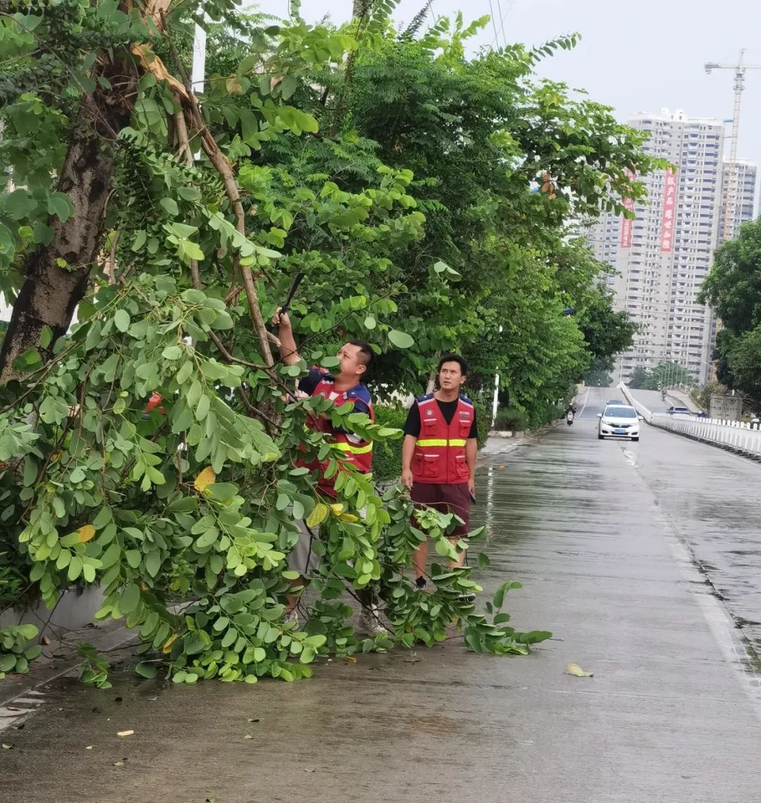 一是隱患排查“零死角”。聯合市住建局對轄區在建工地、水利工程、易積水點、地下車庫開展督導檢查,要求及時停止高空作業、建筑施工,全面加固腳手架、塔吊等設備,妥善勸導和安置危險區域人員。加強對轄區水庫、堤圍、水閘、排澇站等設施檢查,確保排澇設備正常運行。加派一線作業人員對轄區下水道井蓋、雨水井進行清障疏通,預防積水造成水浸,同時,及時處理倒下樹木倒伏、斷枝,避免影響行人車輛安全。