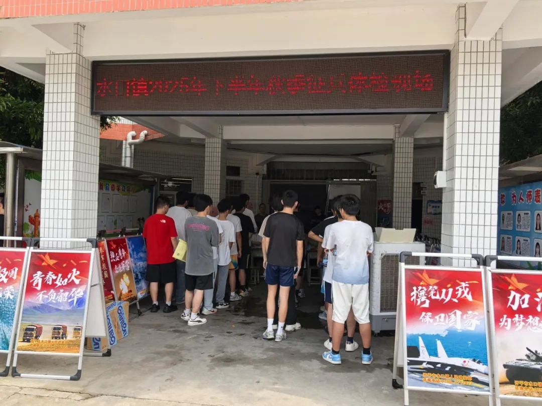盛夏七月,驕陽似火,卻擋不住水口好男兒參軍報國的熱忱之心。7月28日,水口鎮2025年秋季征兵體檢工作在水口鎮第一小學大福分教點全面展開,來自全鎮各村(社區)、相關企業的適齡青年懷揣報國熱情,積極響應國家號召,接受征兵體格檢查,以實際行動為國防事業貢獻青春力量。