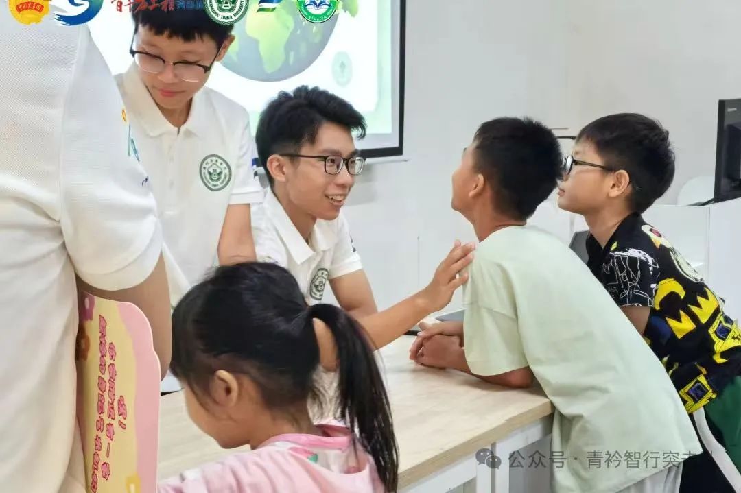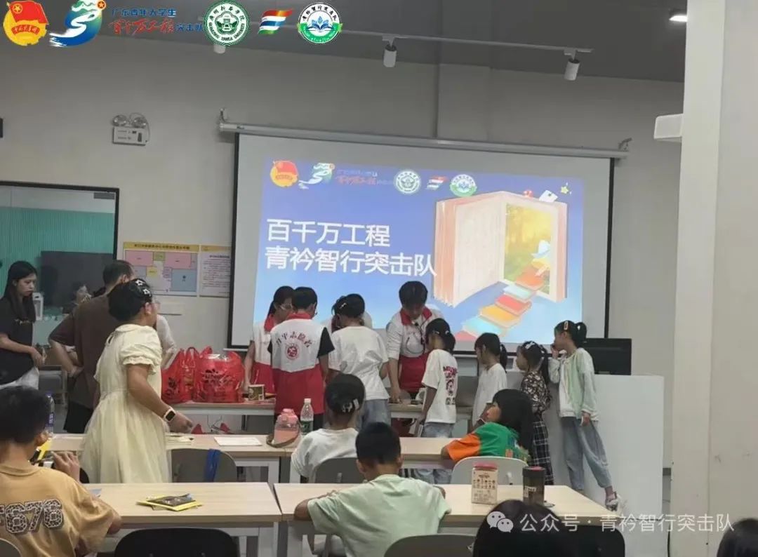 為確保公益課堂的順利開展,隊員們提前到達水口鎮(zhèn)文化室,逐臺檢測和調(diào)試教學設(shè)備,確保PPT切換流暢,音視頻輸出穩(wěn)定。同時,青衿智行突擊隊還精心打造沉浸式學習場景,把活動場地劃分出教具與手工區(qū),懸掛主題橫幅,以最好的狀態(tài)靜候孩子們到來。