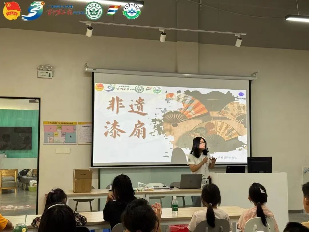 隨后,突擊隊員們?yōu)楹⒆觽冎v述了漆扇的悠久歷史、精湛工藝和文化底蘊,并詳細講解了漆扇的制作流程和浸染彩繪方法,讓知識在輕松愉悅的氛圍中傳遞。