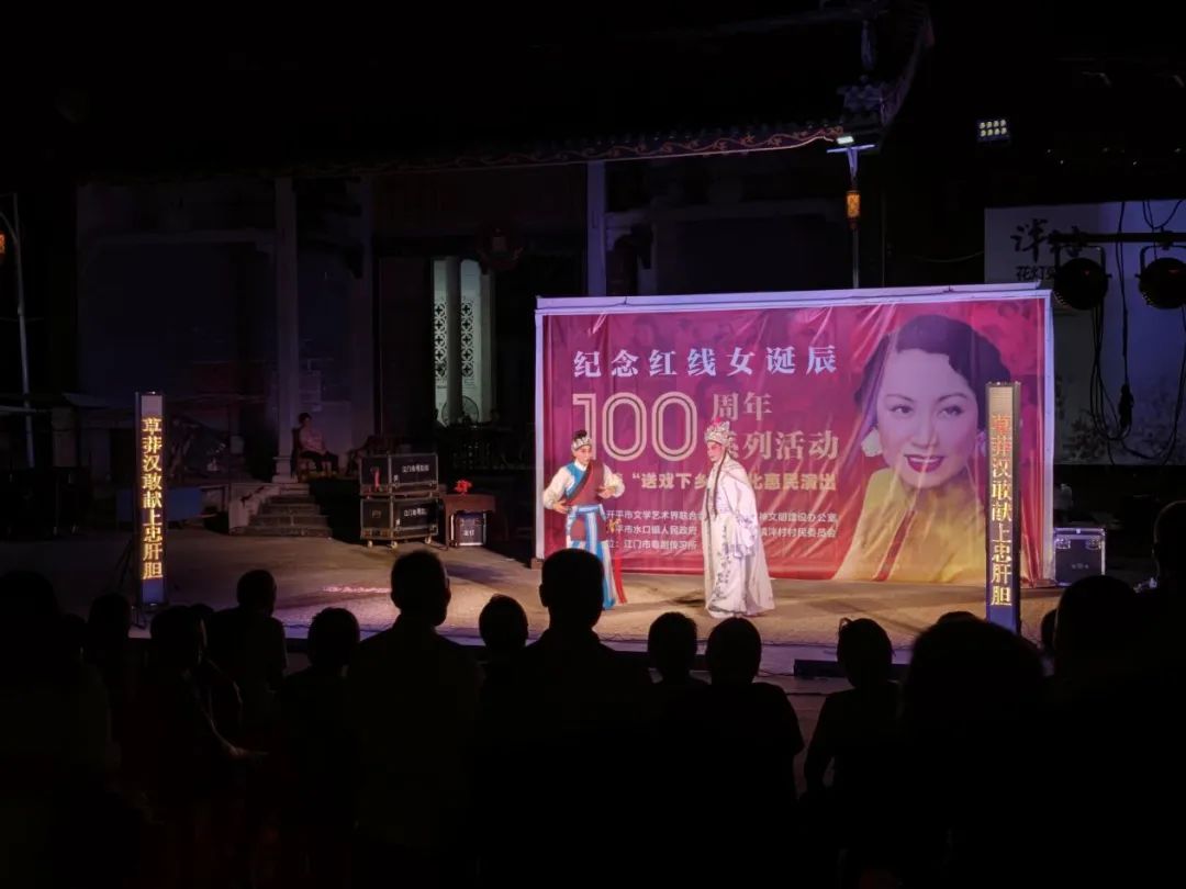 為紀念粵劇藝術大師紅線女誕辰100周年,進一步加強對粵劇文化的傳承弘揚,豐富基層群眾精神文化生活,持續推動水口文化事業高質量發展,8月11日晚,由開平市文學藝術界聯合會、開平市精神文明建設辦公室主辦,水口鎮人民政府、水口鎮泮村村委會協辦,江門市粵劇傳習所承辦的“紀念紅線女誕辰100周年系列活動——水口鎮‘送戲下鄉’文化惠民演出”在泮村村委會文化廣場隆重舉行,為紅線女故鄉村民帶來了一場精彩紛呈的視聽盛宴。