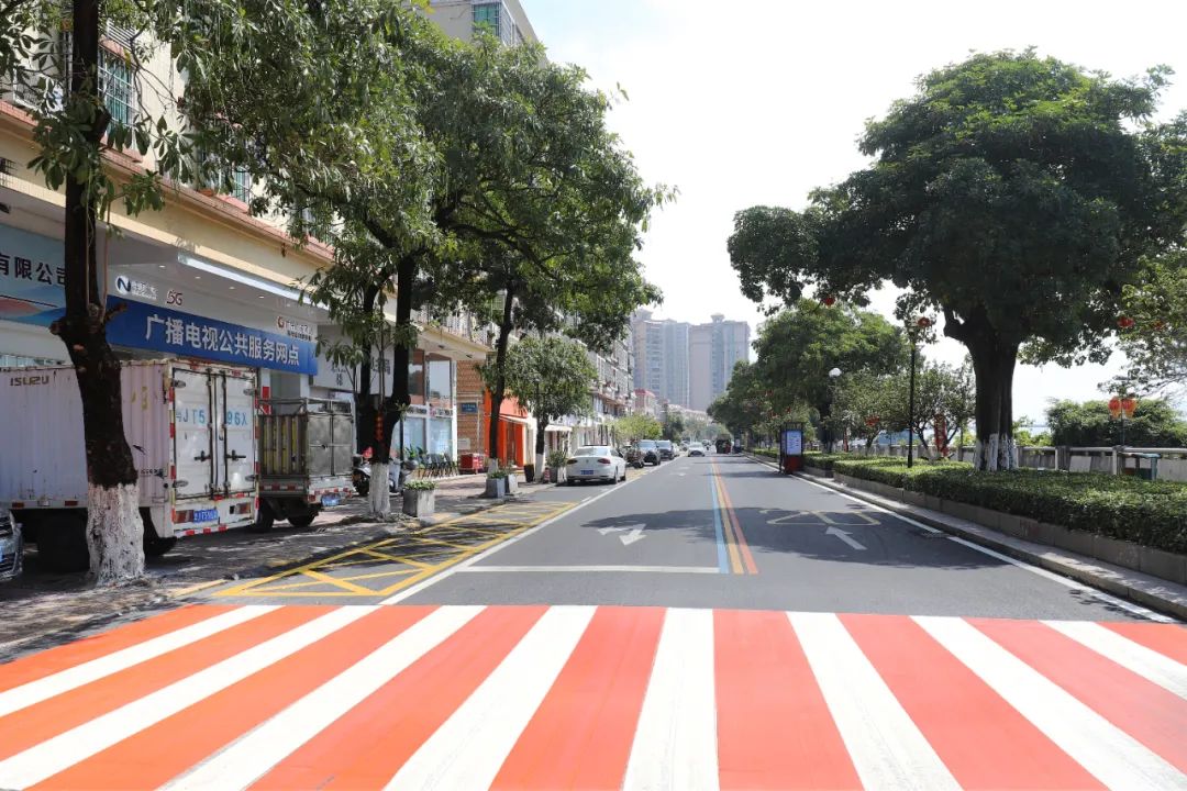 沿江東路毗鄰新橋水河岸,設有機動車道、人行道、綠化地,路面寬敞整潔平坦,交通標線清晰規范,道路兩旁綠樹成蔭,配套齊全,政務服務、休閑娛樂、美食生活等業態一應俱全。同時,緊扣典型鎮“1+4+7+9+N”的建設要求,完成道路基礎設施建設,沿街建筑外立面五要素風貌整治,致力打造成為舒適美觀、干凈整潔、功能豐富的美麗示范主街。
