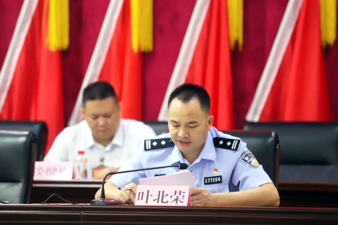 會上,葉北榮副鎮(zhèn)長向大會作《水口鎮(zhèn)社會治安管理工作報告》。