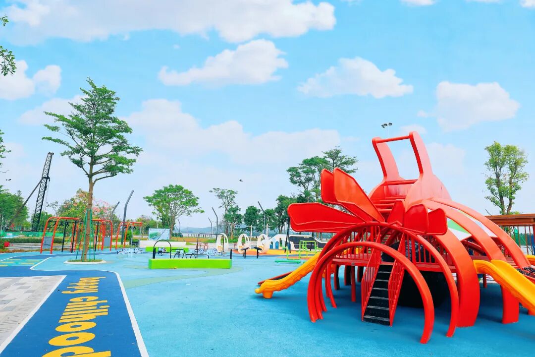 其中,面積達1630平方米的兒童樂園是長廊的核心亮點,園內配備了大魚滑梯、迷你攀巖點、兒童健身器材等多樣化兒童設施,為不同年齡段兒童打造了一個安全益智的活力天地。