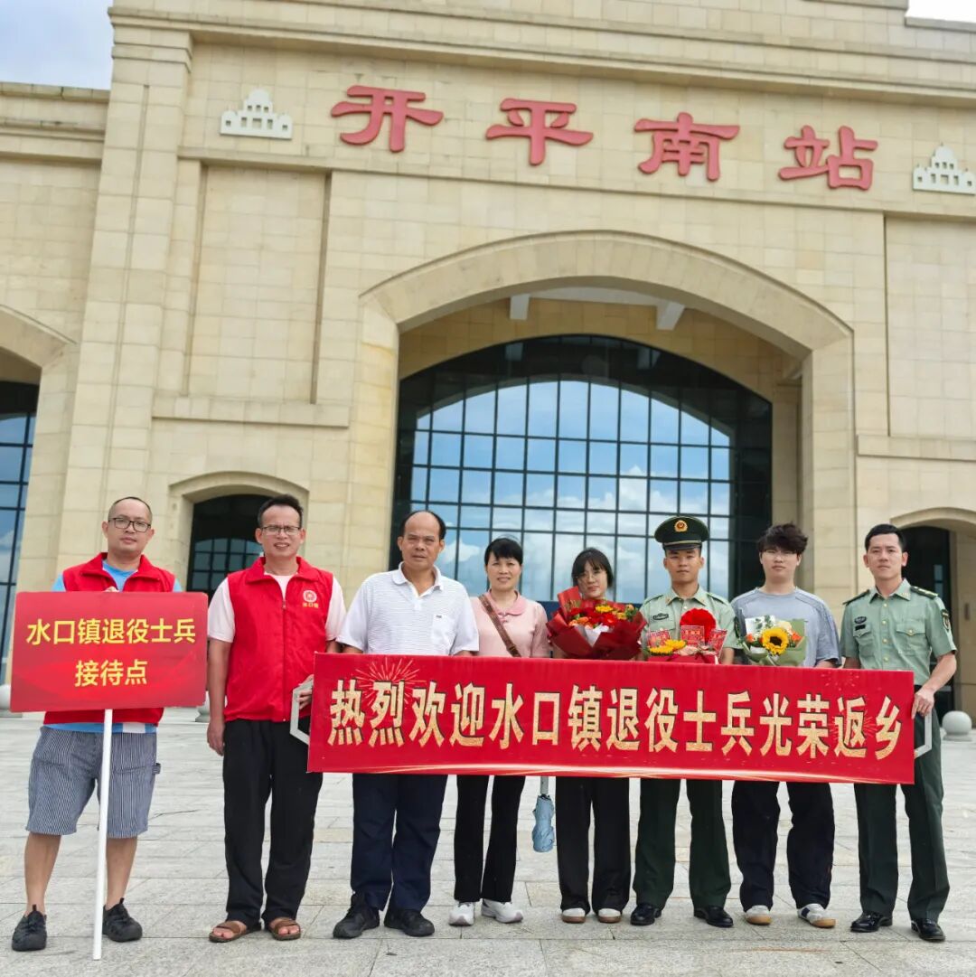 儀式現場,“熱烈歡迎水口鎮退役士兵光榮返鄉”的橫幅格外醒目,水口鎮退役軍人服務站工作人員和軍屬們早早齊聚開平南站,翹首以盼,靜候“最可愛的人”榮耀抵達。